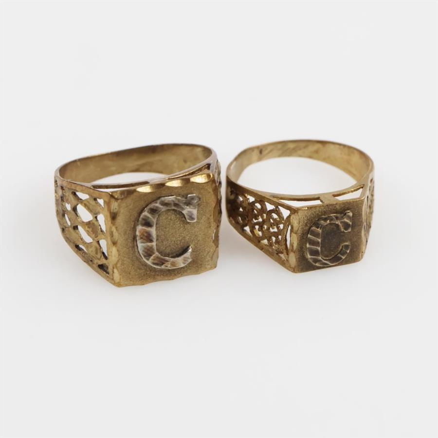 8kt Gold Initial Ring, 2 Pieces