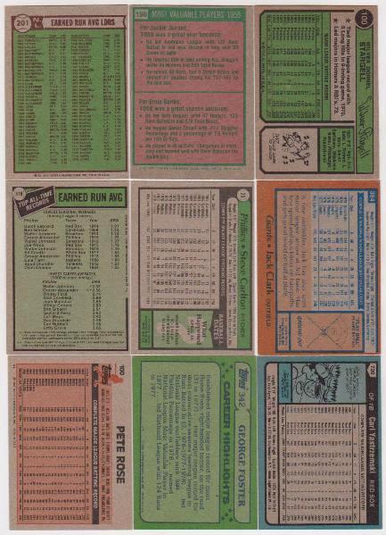 This is a collection of nine different vintage 1970s/1980s baseball cards. These are all Star/Hall of Fame players.  This lot includes: