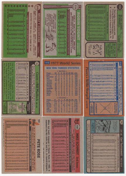 This is a collection of nine different vintage 1970s/1980s baseball cards. These are all Star/Hall of Fame players.  This lot includes: