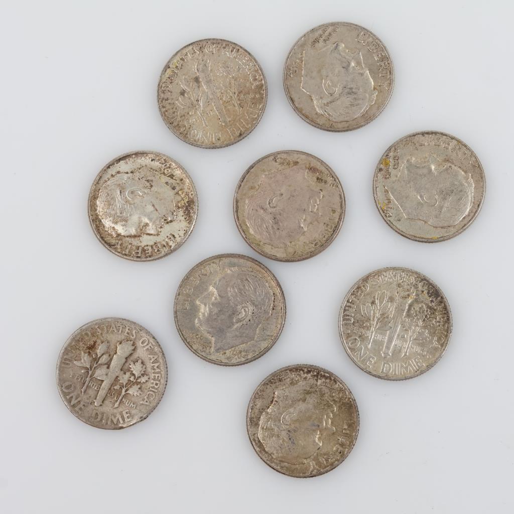 9 US Roosevelt Silver Dimes