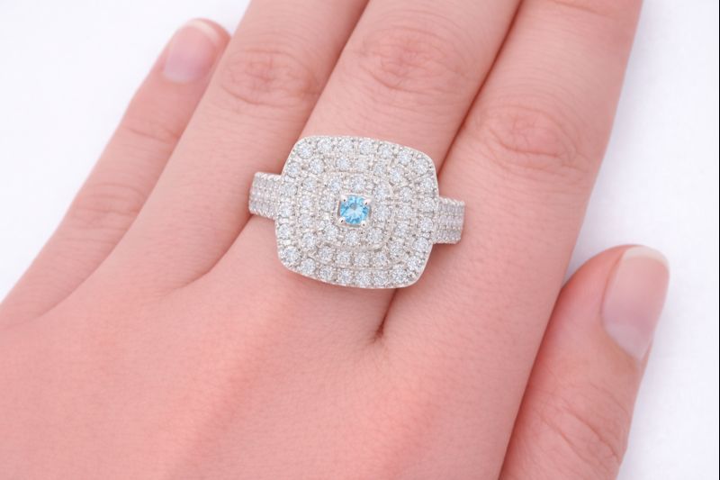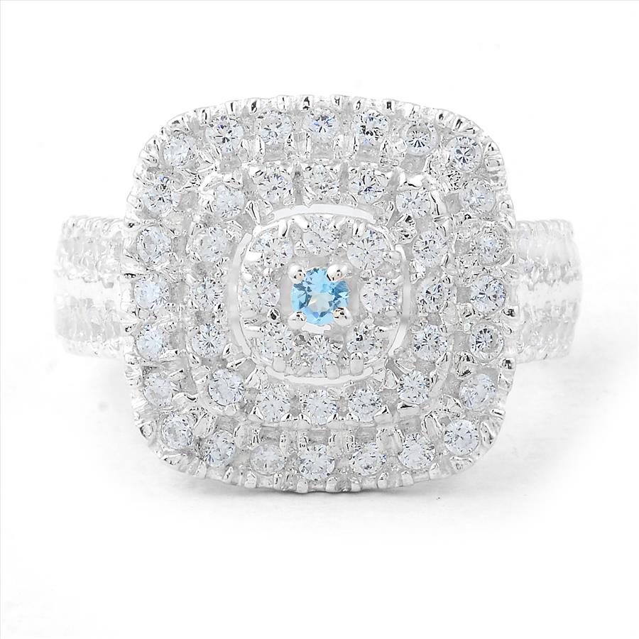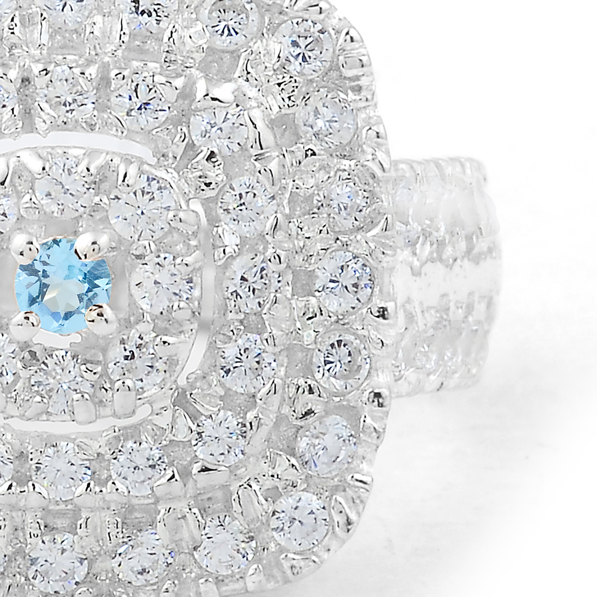 925 Sterling Silver 0.53 Ct Round Swiss Blue Topaz Cubic Zirconia Ring 7 US Ring Size