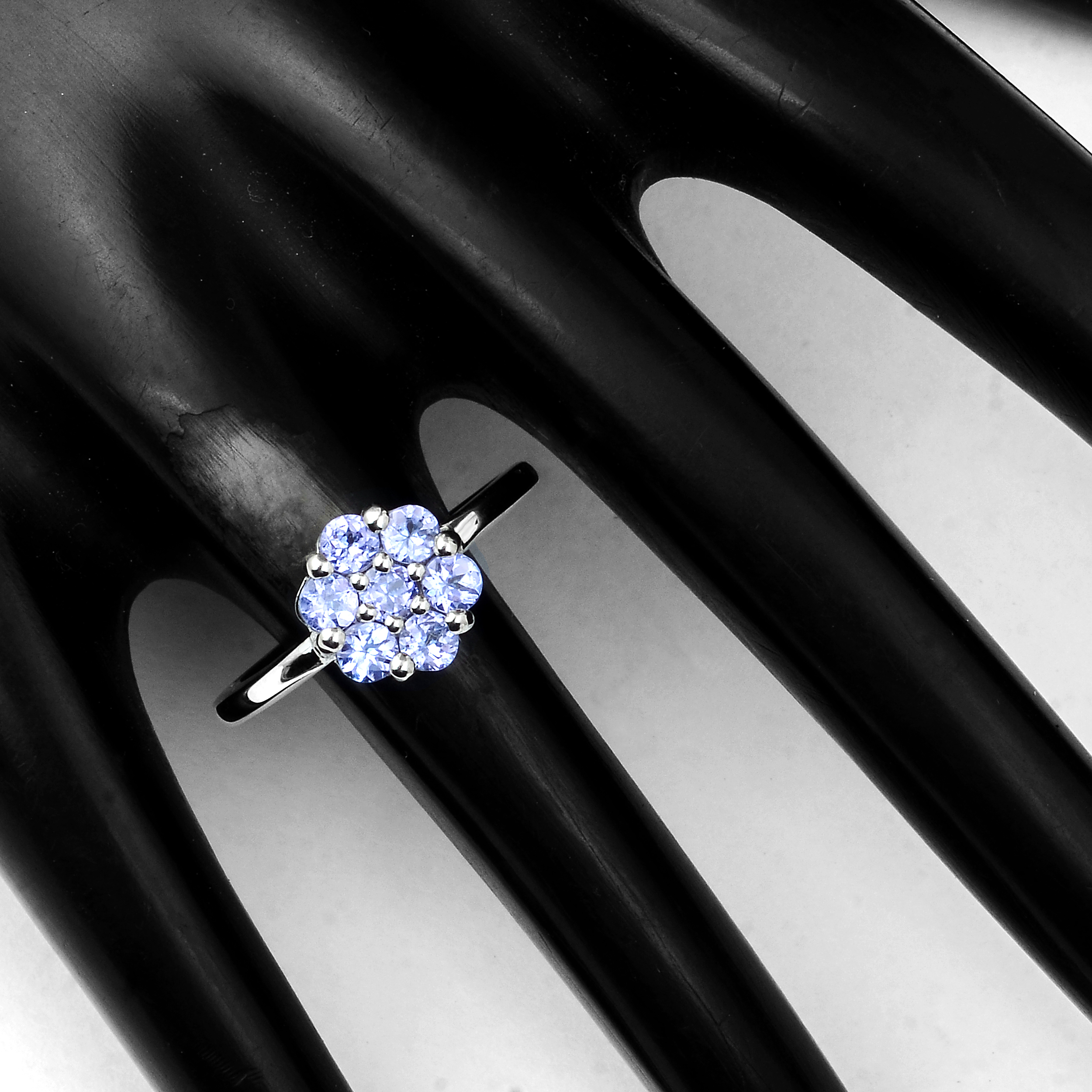 925 Sterling Silver 0.75 Ct Round Tanzanite Ring 7 US Ring Size