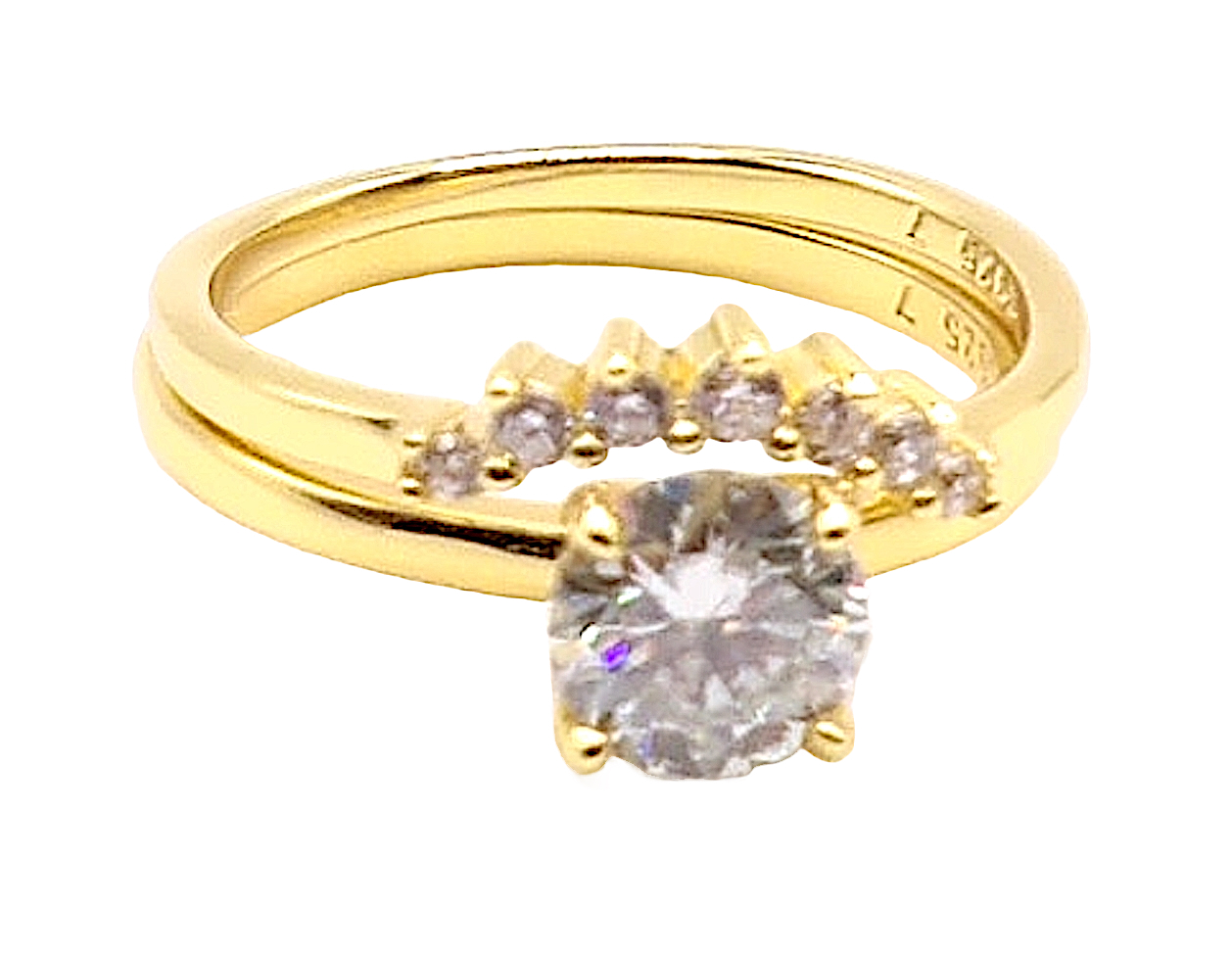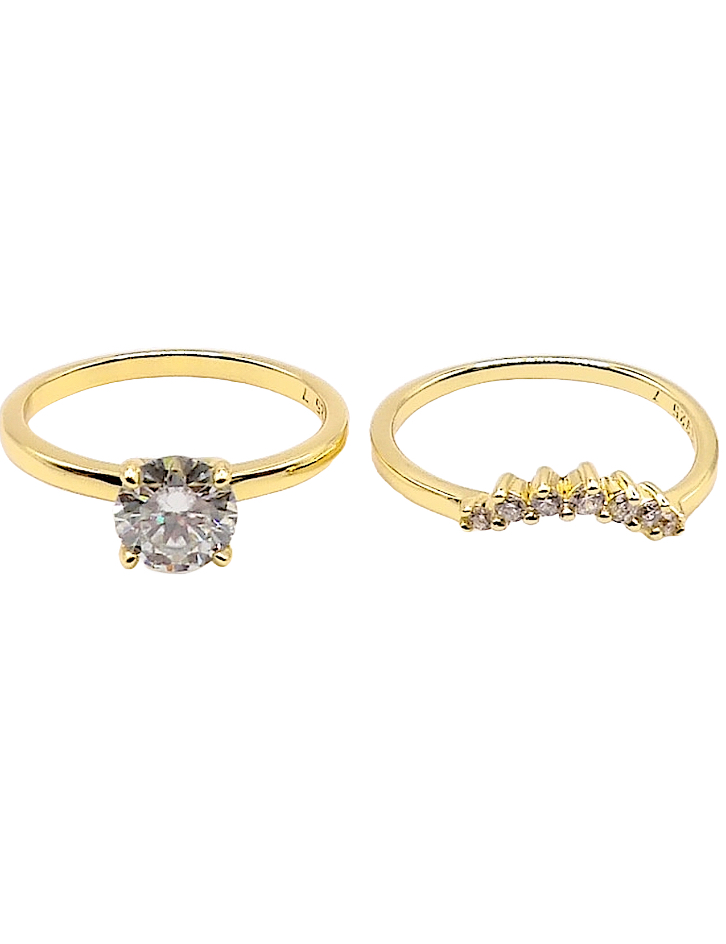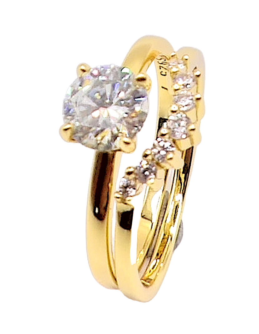 925 Sterling Silver 1.0ct Moissanite 18K Gold Engagement/Wedding Ring Set
