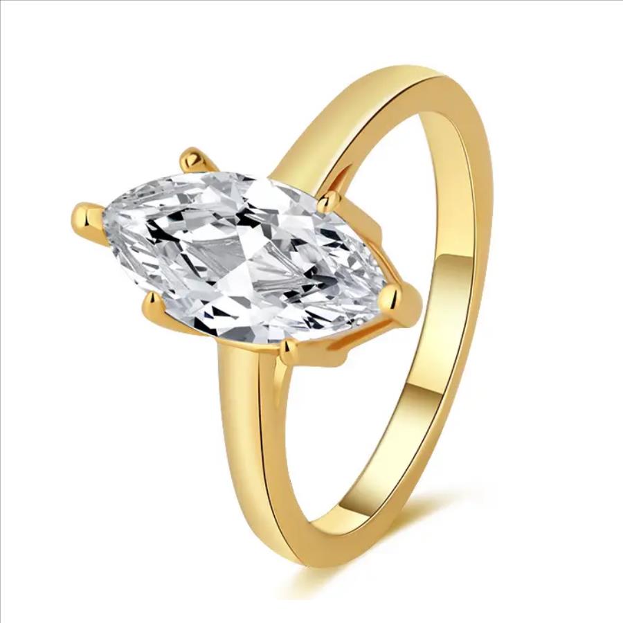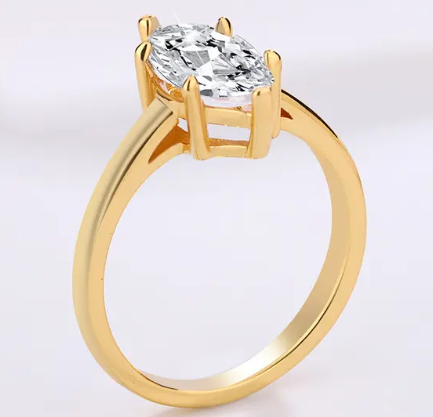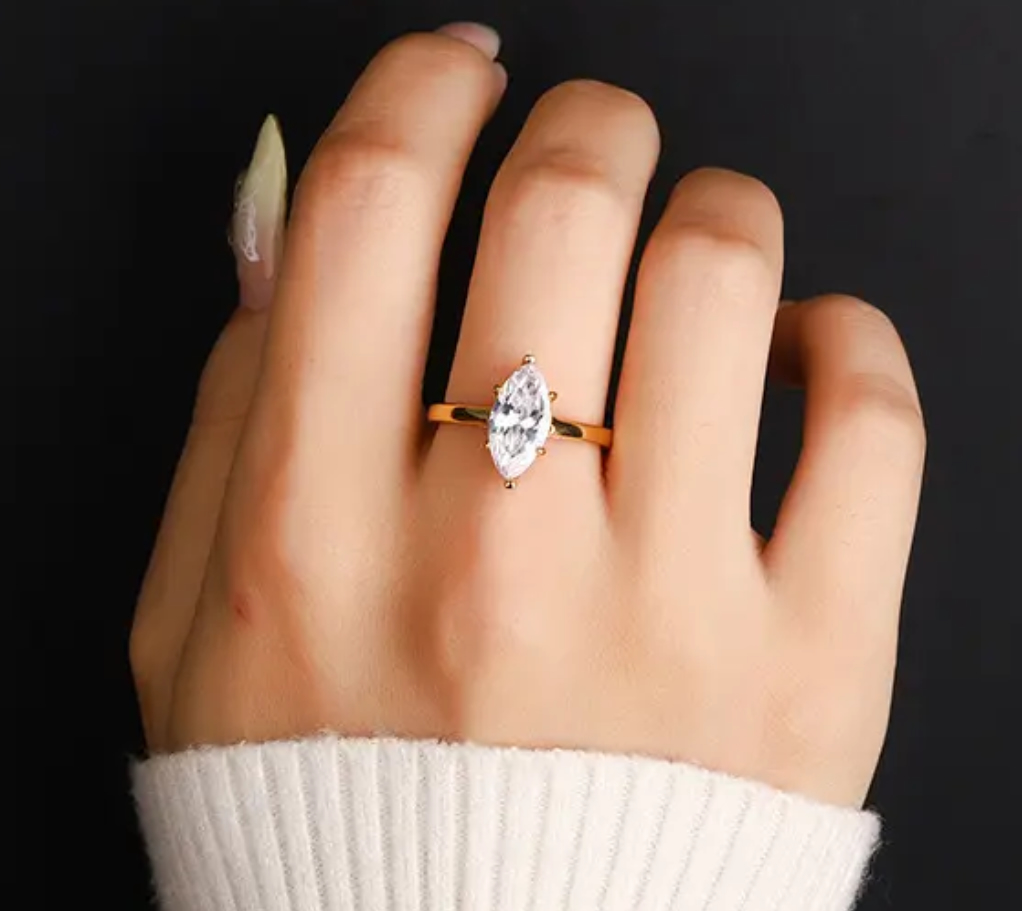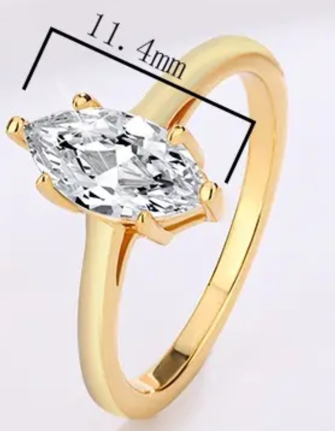 This Ultra Premium Simulated Diamond is Mounted in 925 Stamped Solid Sterling Silver with 18K Gold Overlay, which gives this Ring its High Polish and Shine