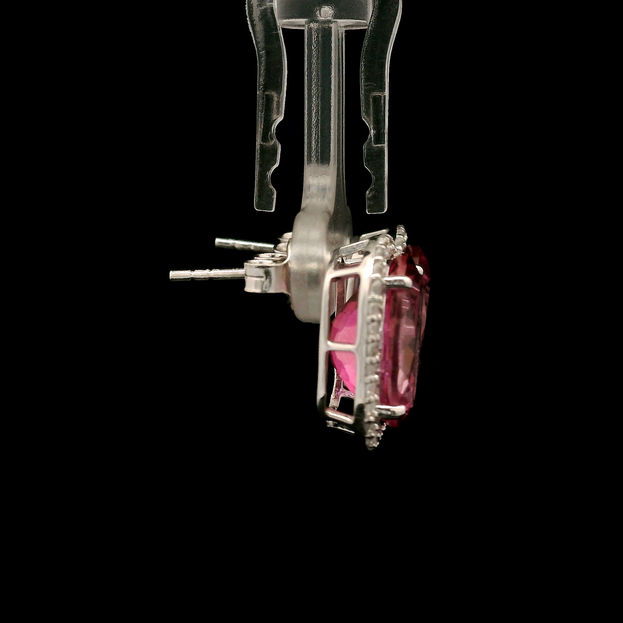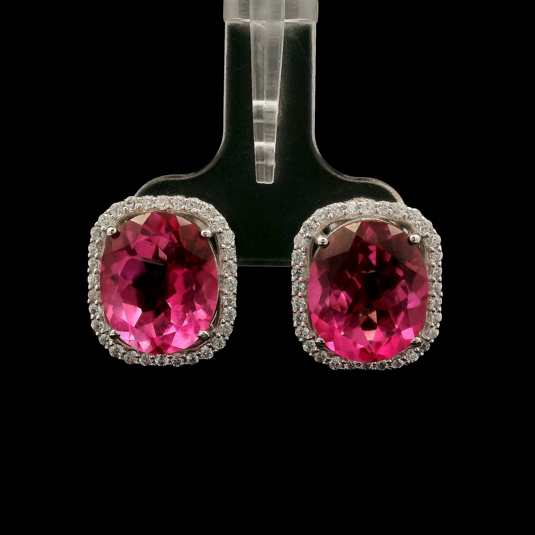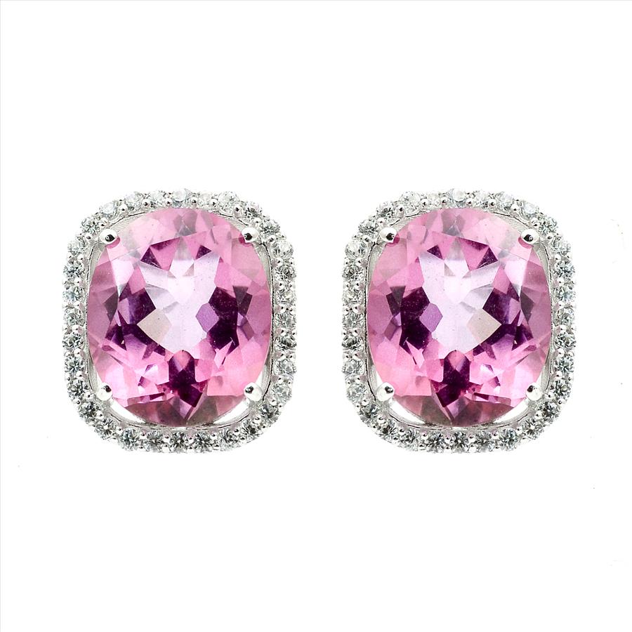925 Sterling Silver 12.32 Ct Oval Pink Topaz White Zircon Earrings