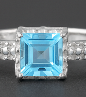 925 Sterling Silver 1.40 Ct Square Blue Topaz Ring 9 US Ring Size