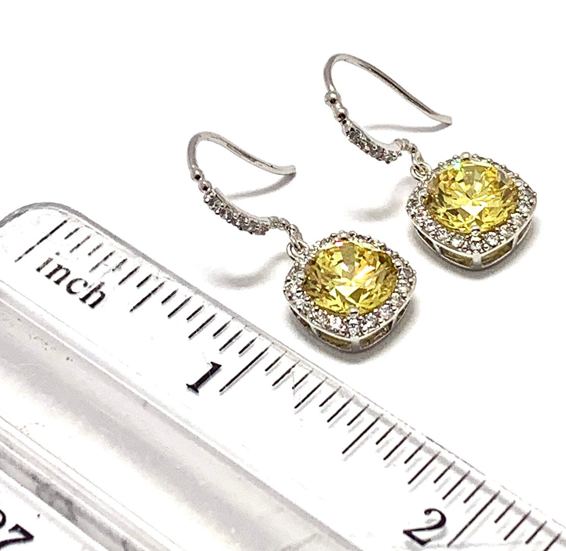 .925 Sterling Silver & 14k Gold 12.75ctw Vivid Yellow Topaz & Diamonique Diamond Earrings