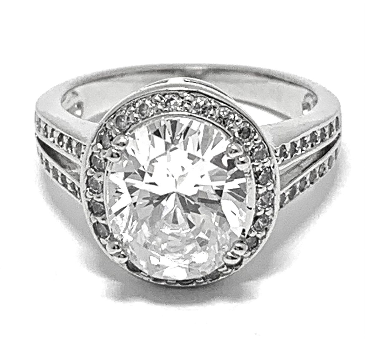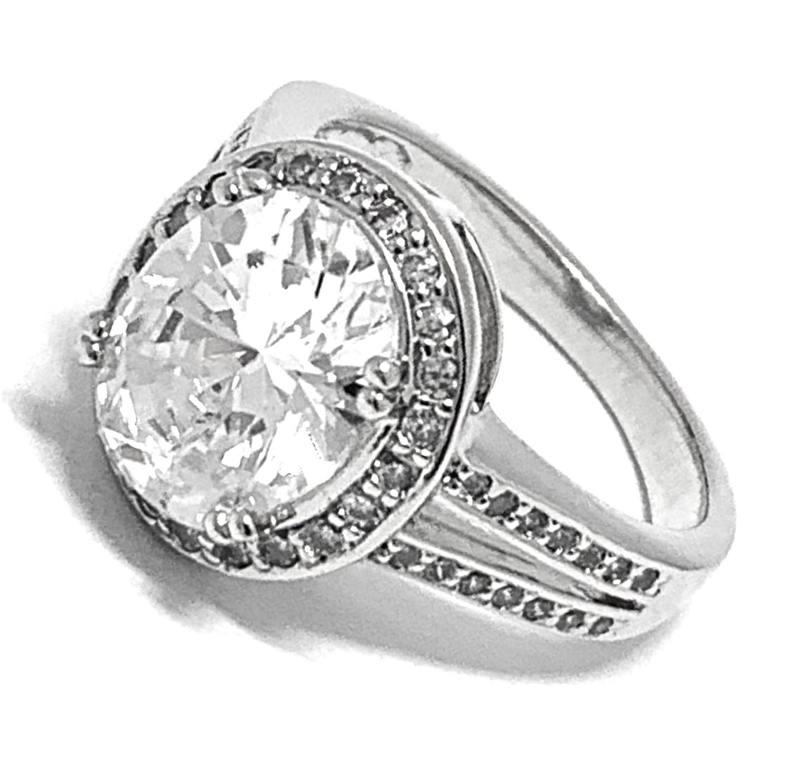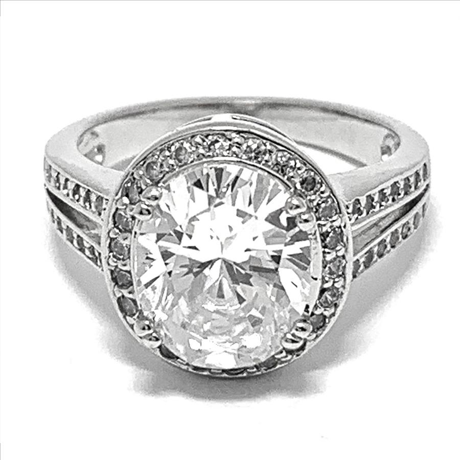 925 Sterling Silver & 14k Gold 6.50ctw Diamonique Diamond Modern Design Large Engagement Ring