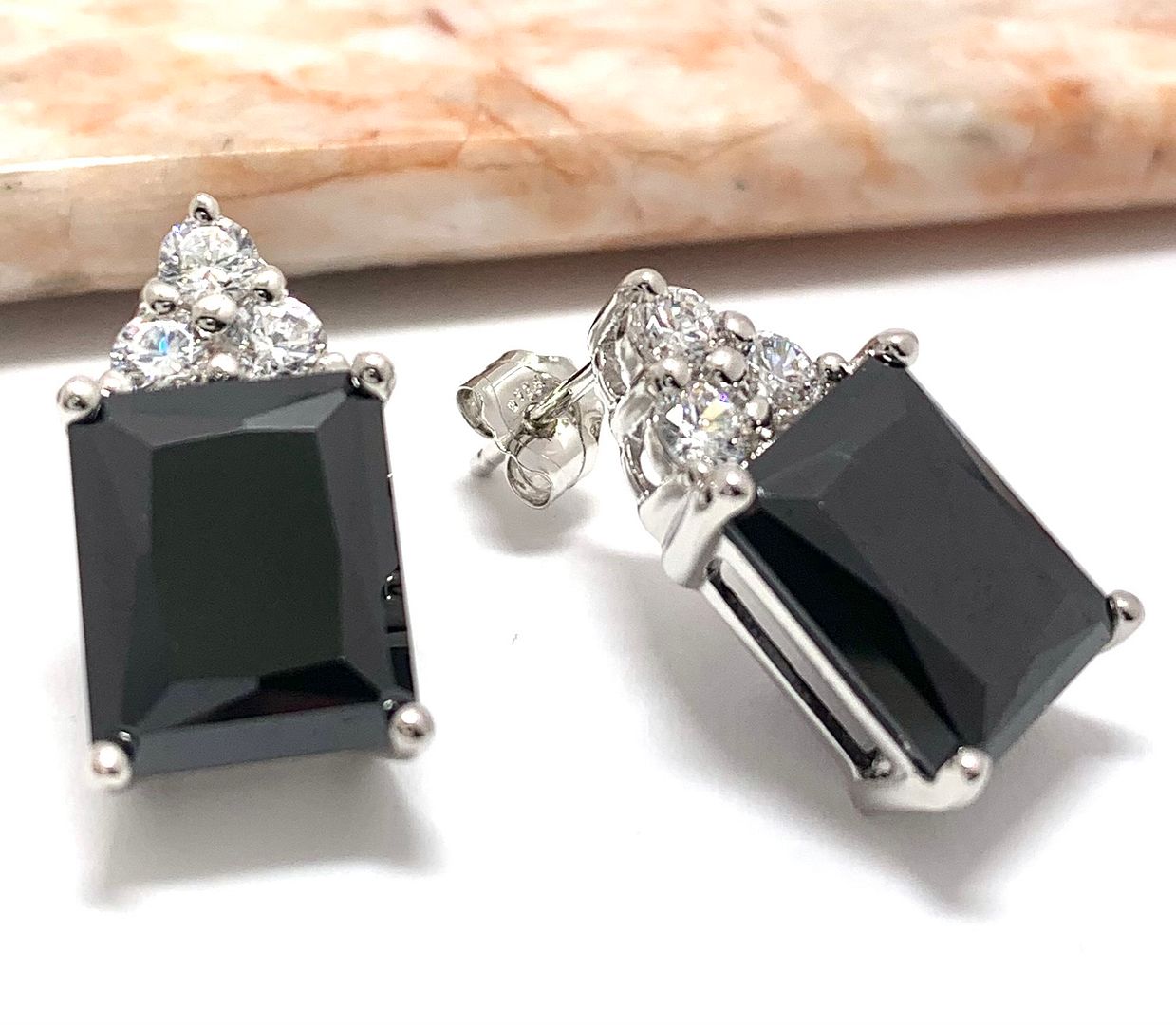 .925 Sterling Silver & 14k Whi.te Gold 12.00 ctw Black Spinel & 0.60ctw White Topaz Stud Earrings