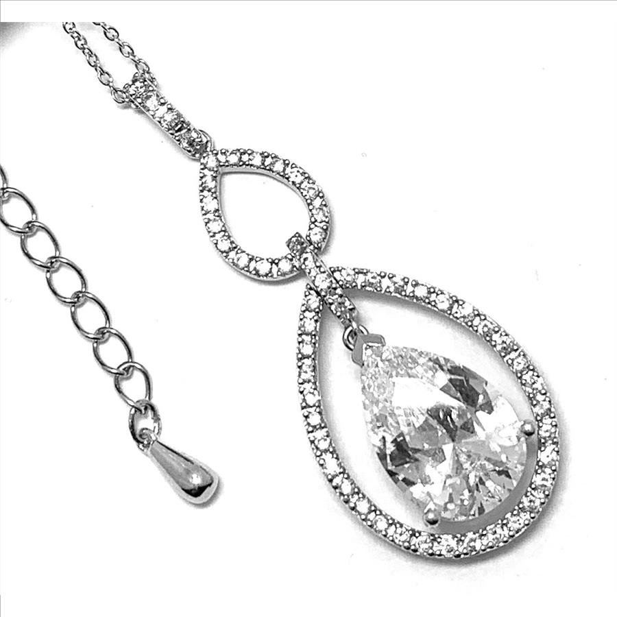 .925 Sterling Silver &14k White Gold 9.75ctw Diamonique Diamond Necklace