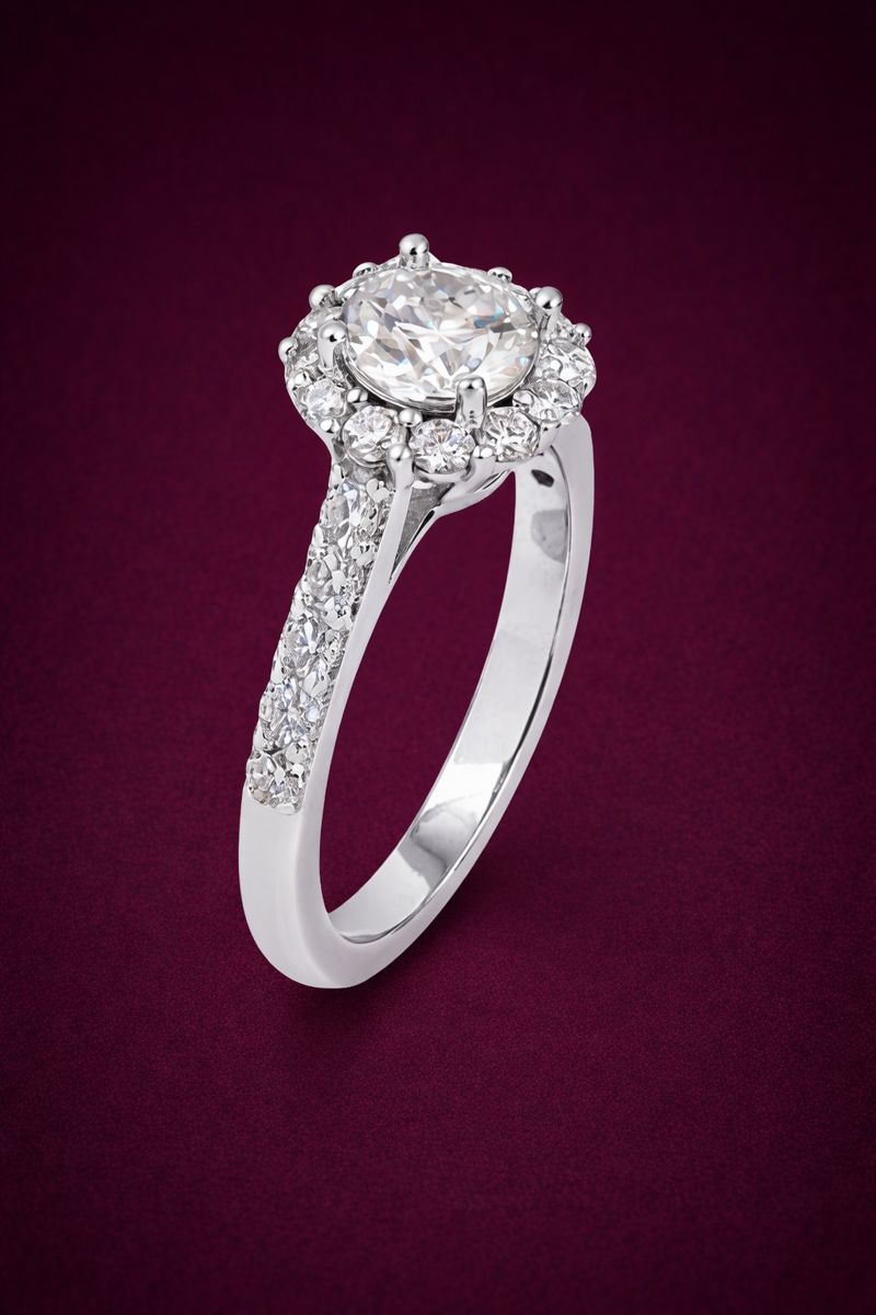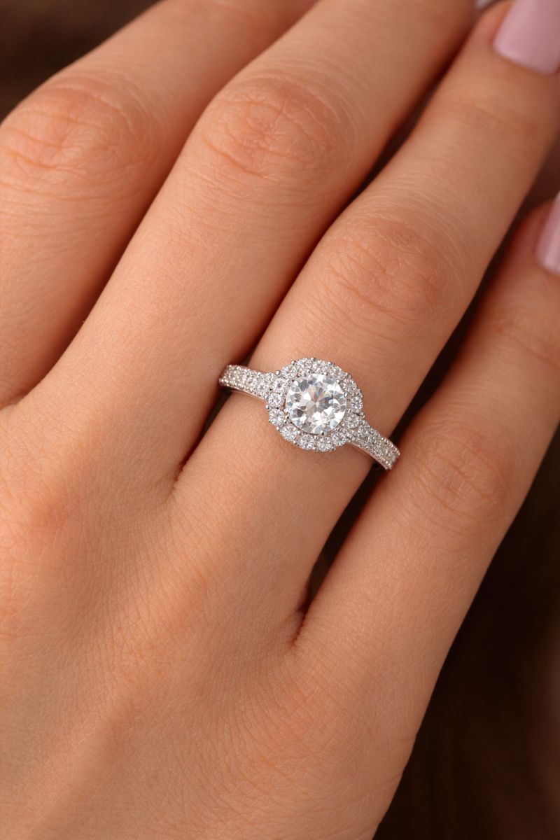 925 Sterling Silver 1.60 Ct TW Moissanite Halo Ring 5 US Ring Size