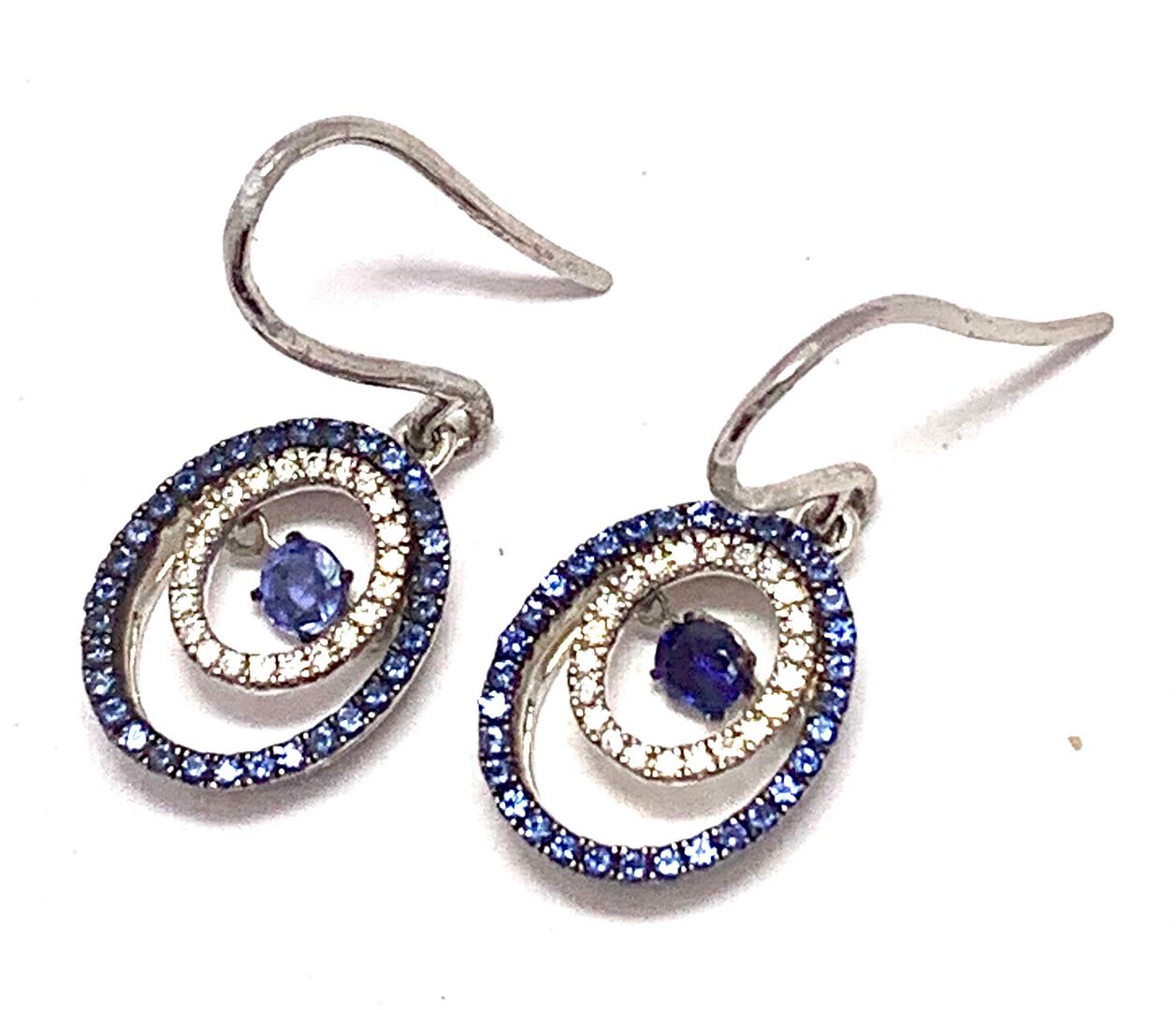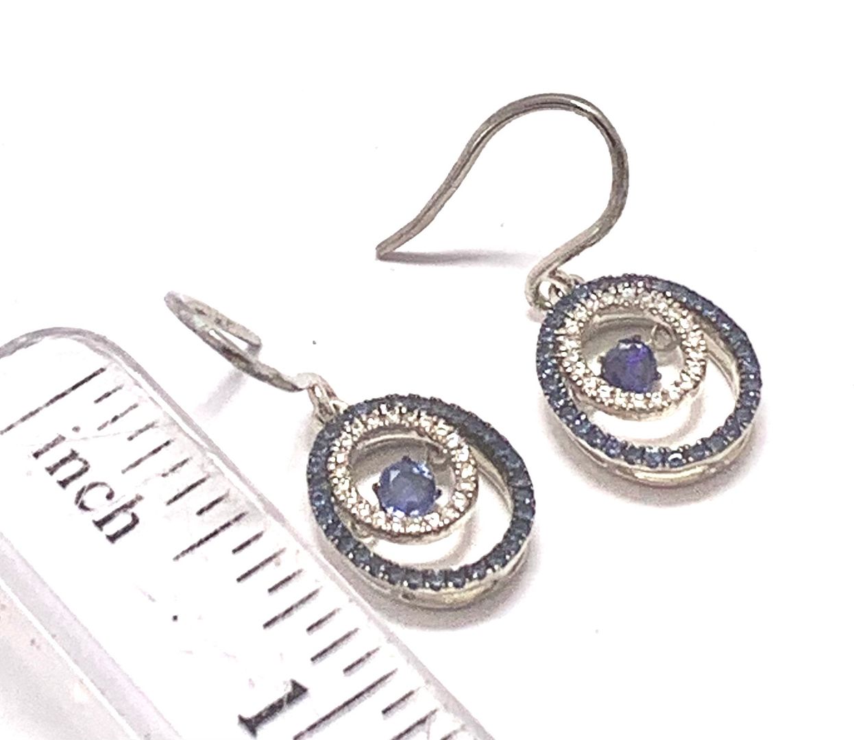 .925 Sterling Silver & 18k White Gold Dancing Diamond Design Earrings