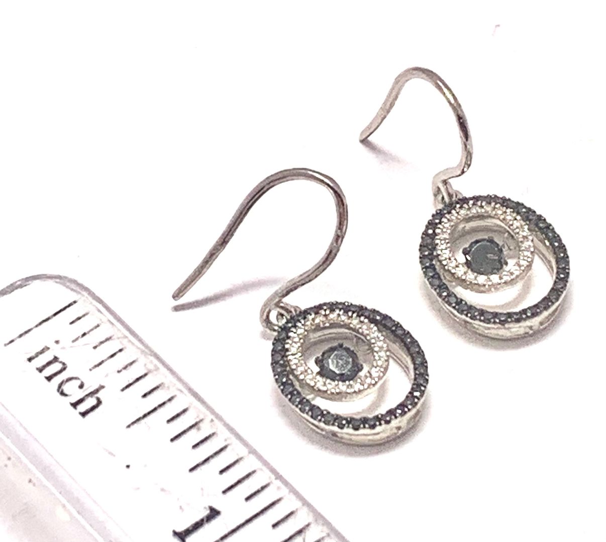 .925 Sterling Silver & 18k White Gold Dancing Diamond Design Earrings.