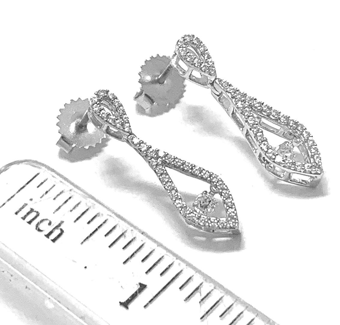 .925 Sterling Silver & 18k White Gold Dancing Diamond Design Earrings.