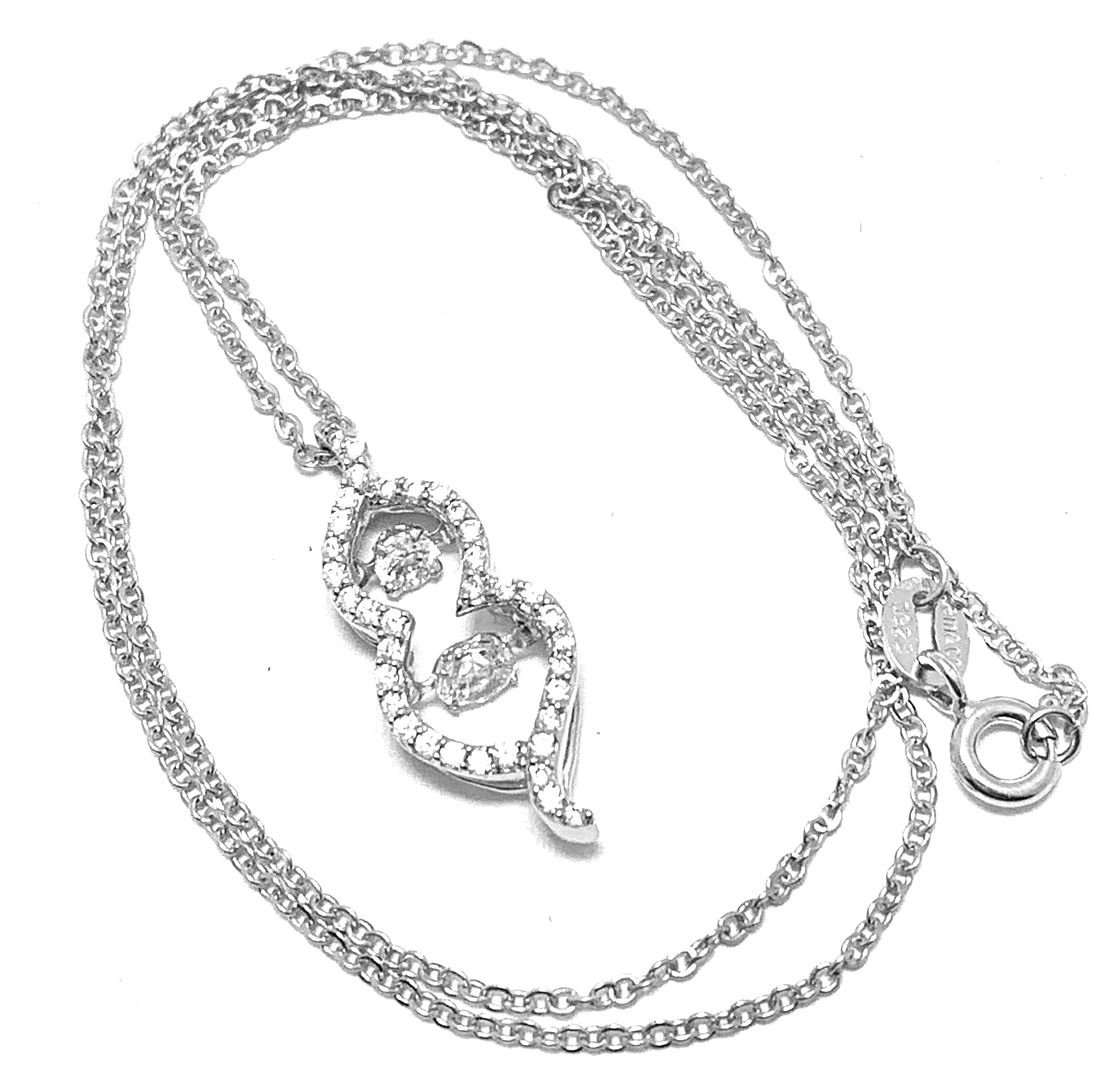 .925 Sterling Silver & 18k White Gold Dancing Diamond Design Necklace