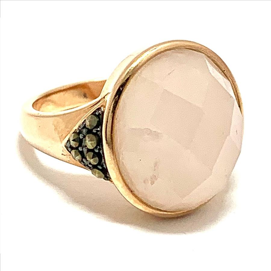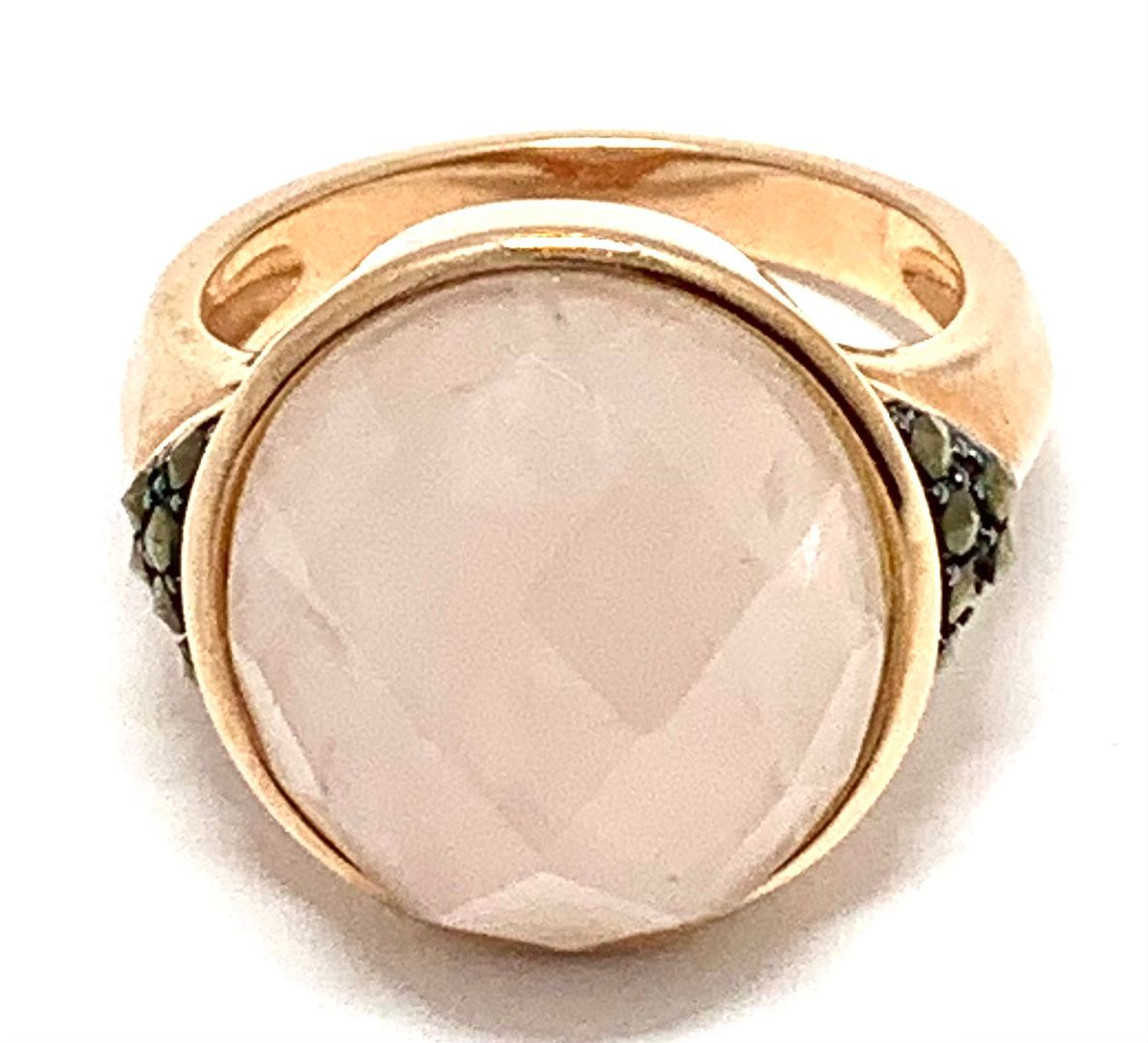 .925 Sterling Silver & 18k Yellow Gold 10.15ctw Genuine Pink Agat & Marcasite Ring