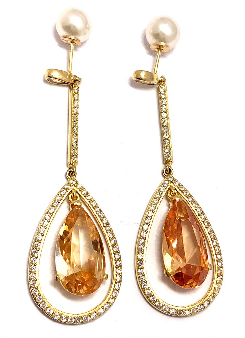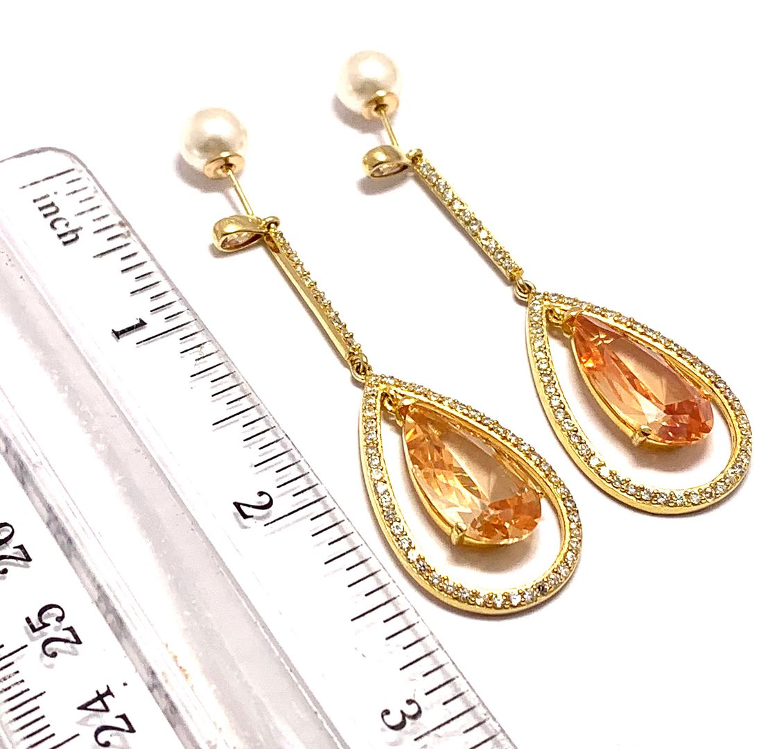 .925 Sterling Silver & 18k Yellow Gold 38.00ctw Golden Topaz & Diamonique Diamond Dangle Earrings