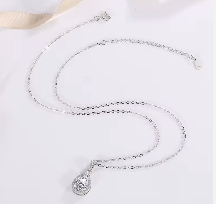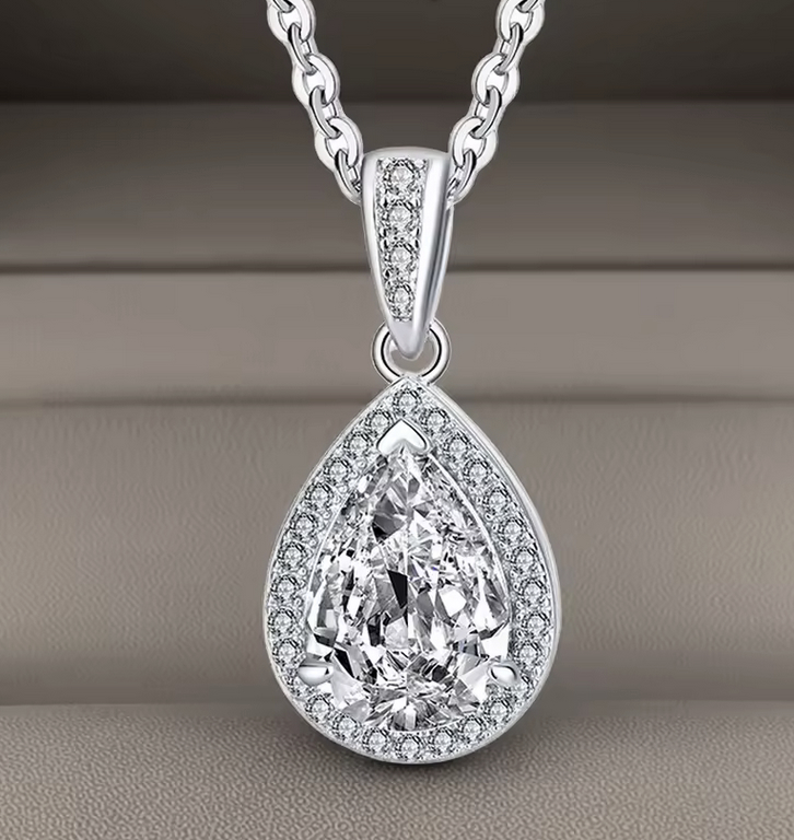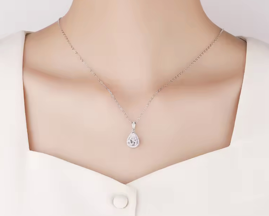 This Ultra Premium Simulated Diamond is Mounted in 925 Stamped Solid Sterling Silver with White Gold Overlay, which gives this Necklace its High Polish and Shine