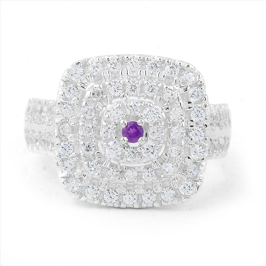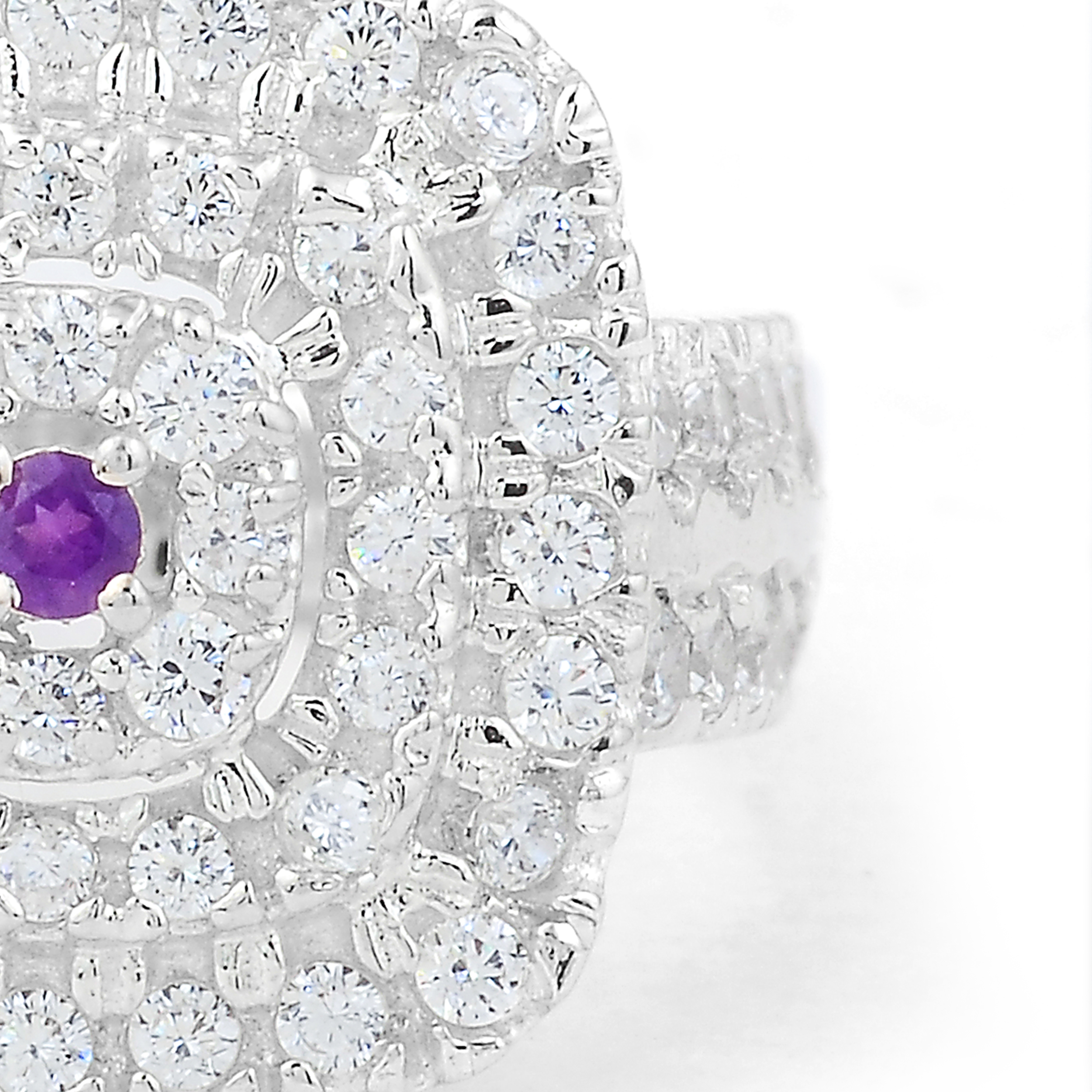 925 Sterling Silver 2.11 Ct Round Amethyst Cubic Zirconia Ring 7 US Ring Size