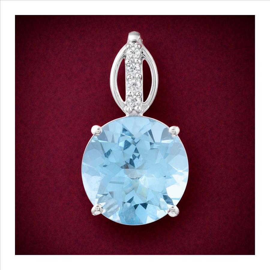 925 Sterling Silver 4.04 Ct Round Blue Topaz Cubic Zirconia Pendant