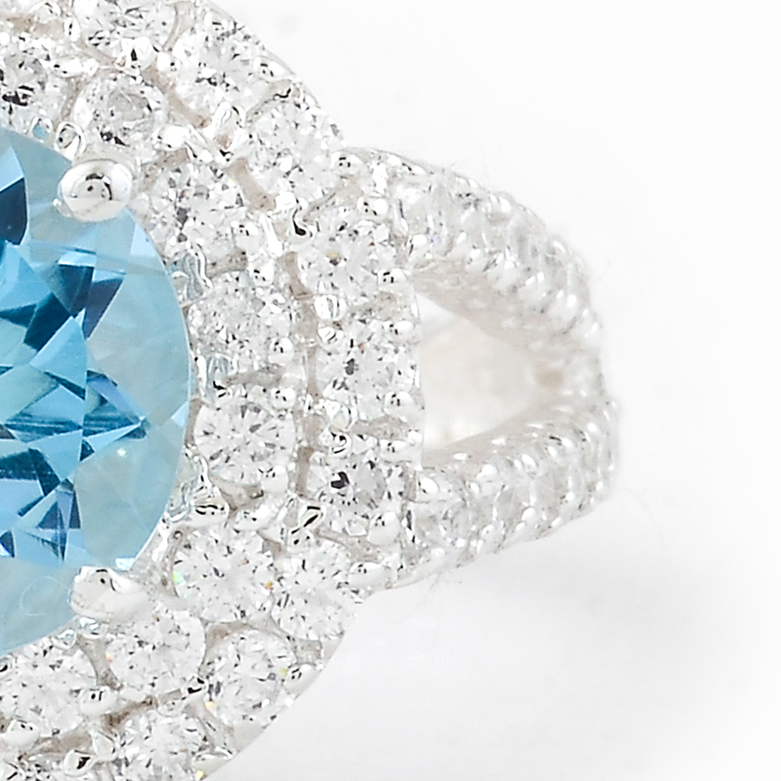 925 Sterling Silver 4.27 Ct Round Blue Topaz Cubic Zirconia Ring 7 US Ring Size
