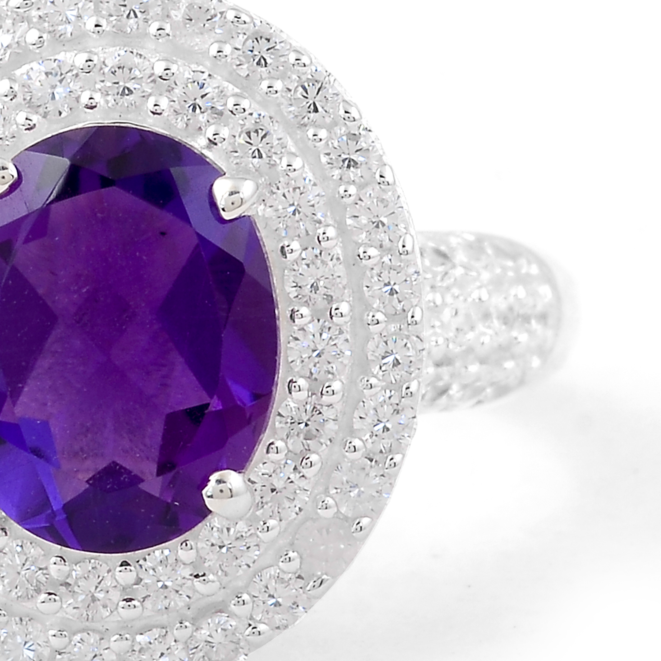 925 Sterling Silver 4.54 Ct Oval Created Amethyst Cubic Zirconia Ring 7 US Ring Size
