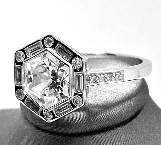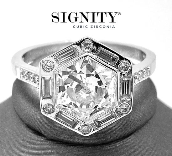 .925 Sterling Silver, 4.75ct "SIGNITY STAR" Cubic Zirconia Ring Size 9