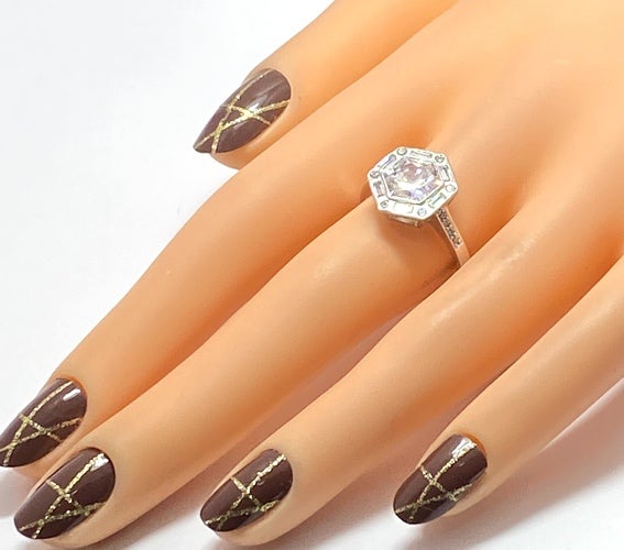 "This ring feature our top quality 5A flawless Signity zirconia. These lab created simulated diamonds produce an incredible shine and brilliance. Each are carefully hand set by master jewelers onto a genuine 925 sterling silver base. The item is then rhodium coated to give you the exact same finish of white gold jewelry. This ring will give you the look, feel and experience of high end fine jewelry at a price that is affordable.