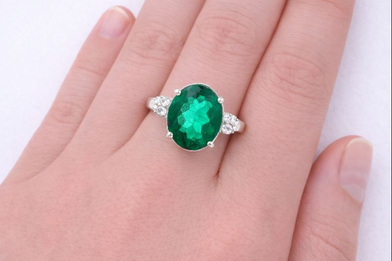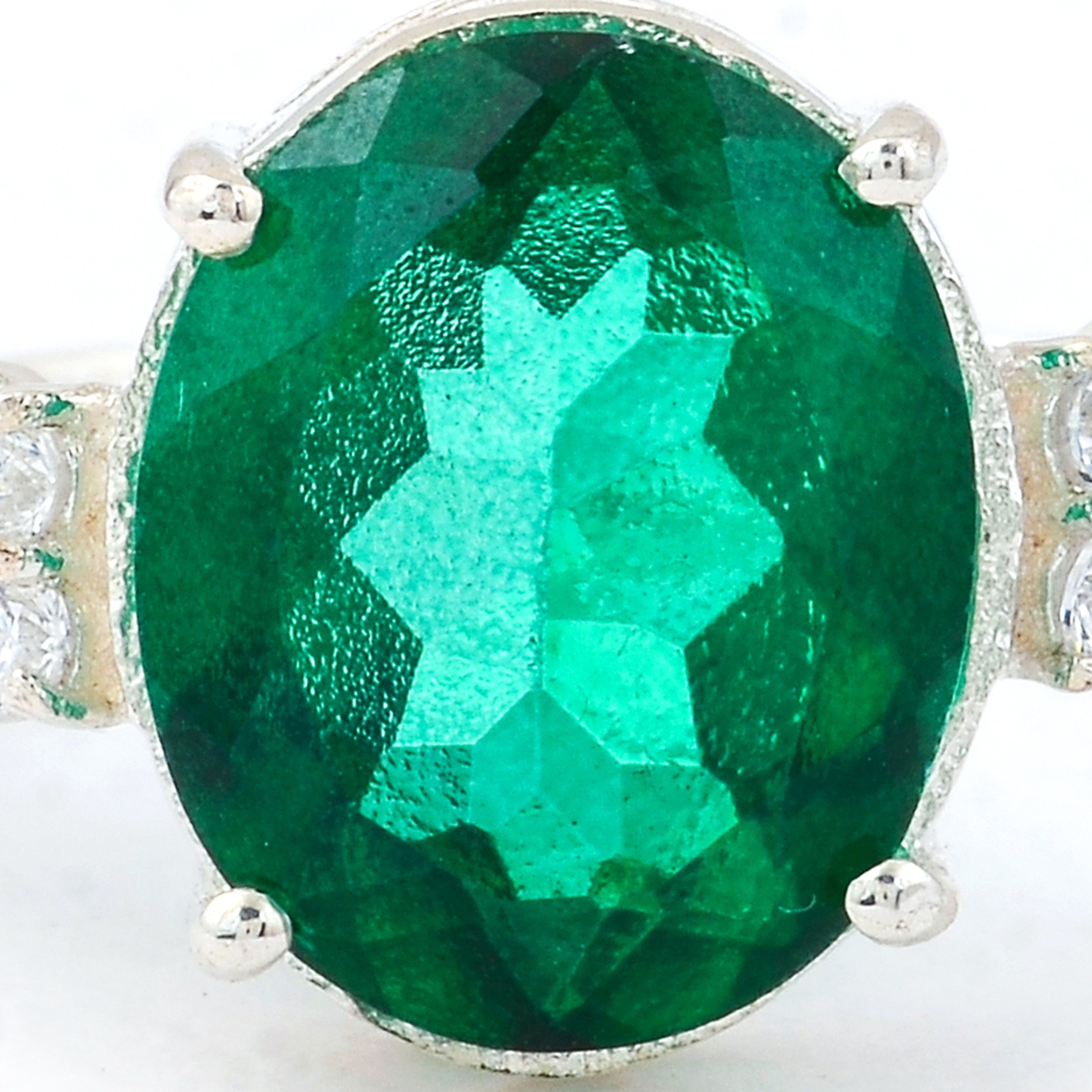 925 Sterling Silver 6.28 Ct Oval Green Topaz Cubic Zirconia Ring 7 US Ring Size
