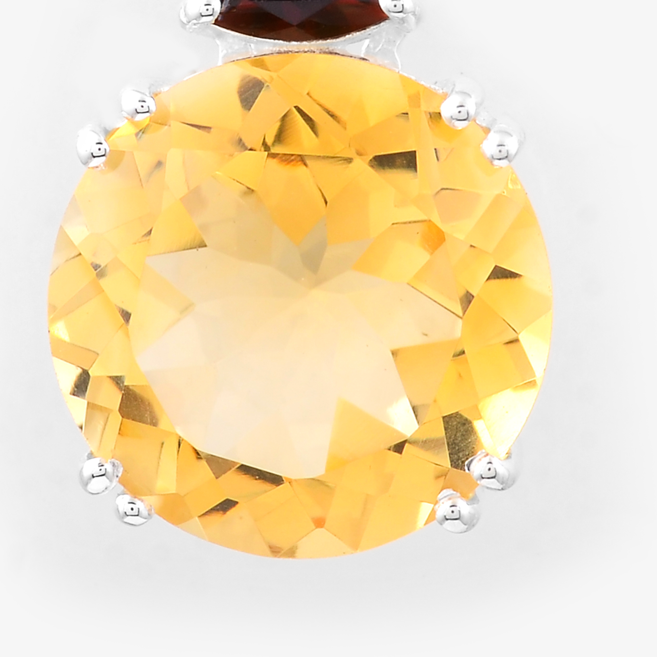 925 Sterling Silver 6.53 Ct Round Citrine Garnet Cubic Zirconia Pendant