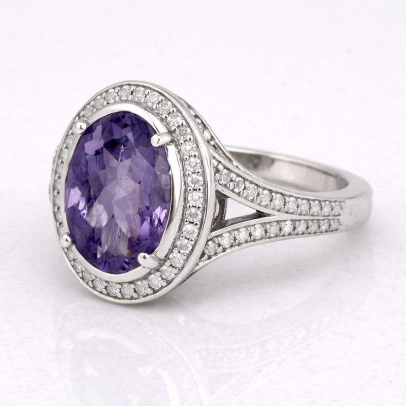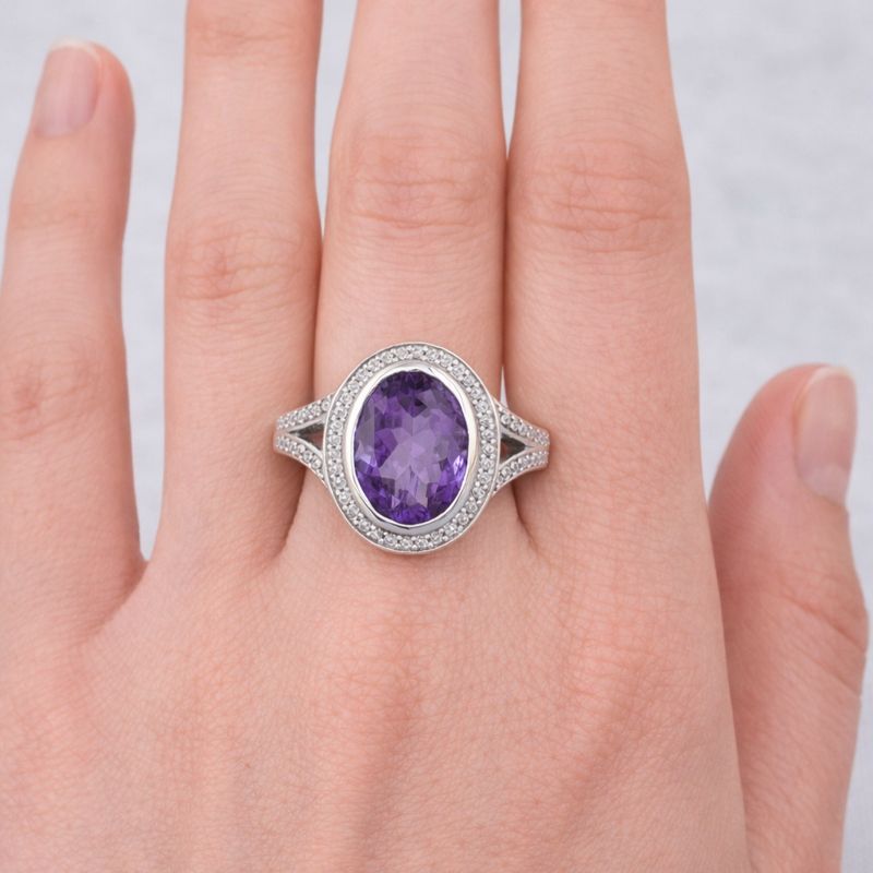 925 Sterling Silver 6.58 Ct Oval Amethyst Cubic Zirconia Ring 7 US Ring Size