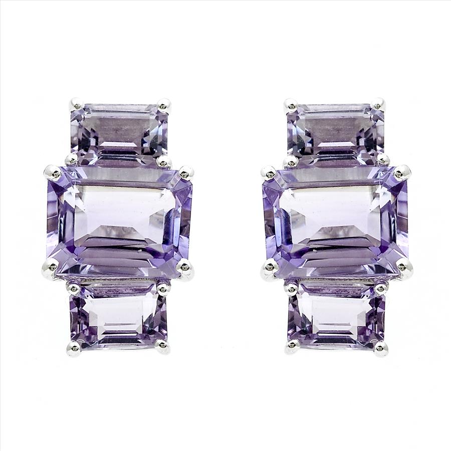925 Sterling Silver 6.61 Ct Octagon Amethyst Earrings