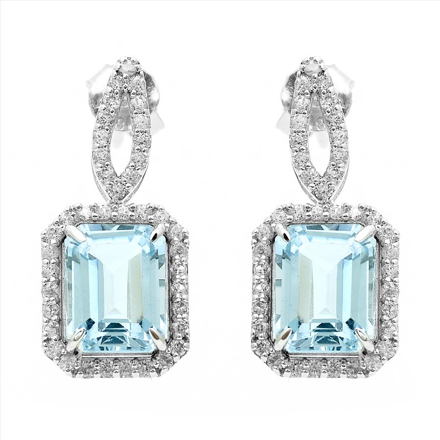 925 Sterling Silver 6.68 Ct Octagon Blue Topaz White Zircon Earrings