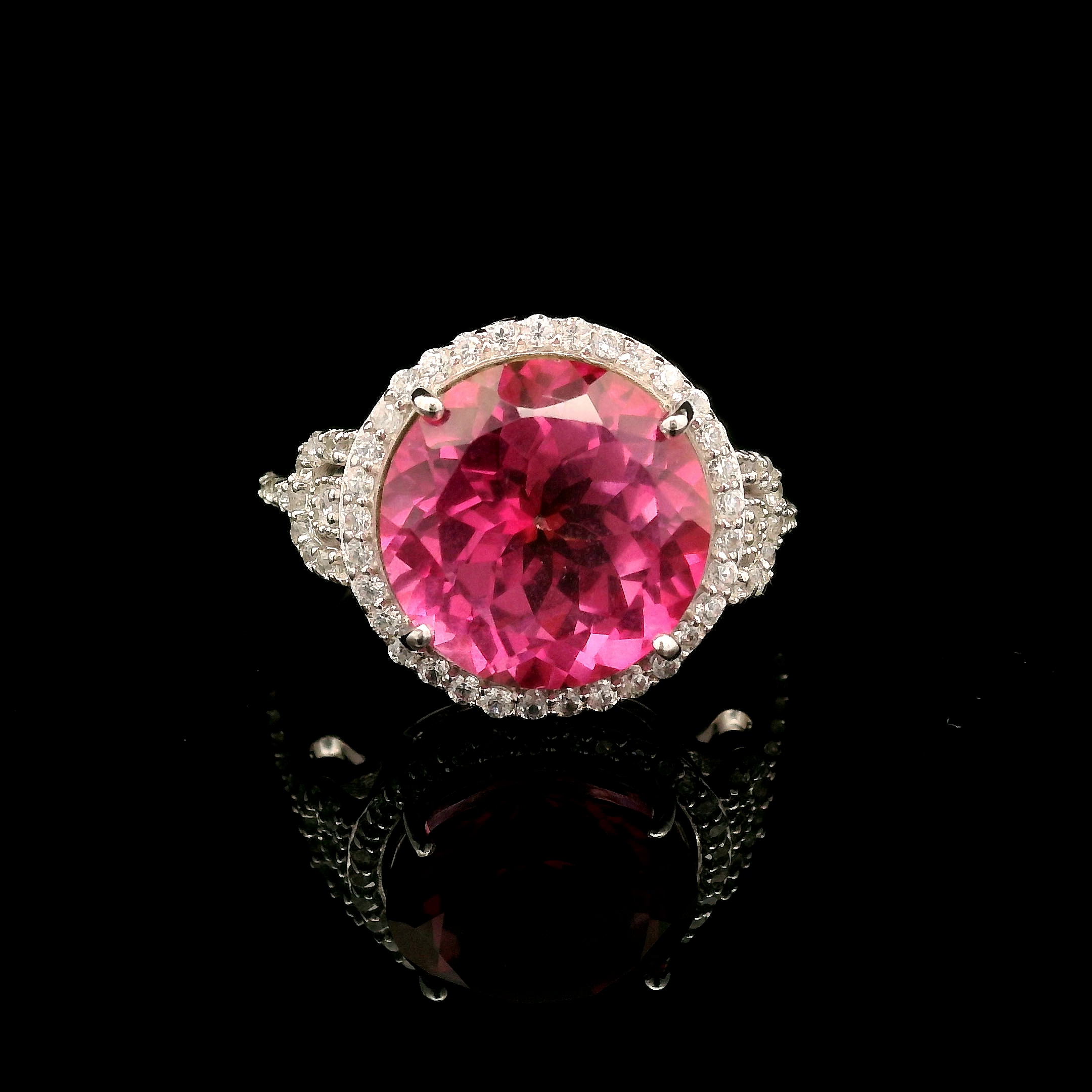 925 Sterling Silver 9.35 Ct Round Pink Topaz White Zircon Ring 7 US Ring Size