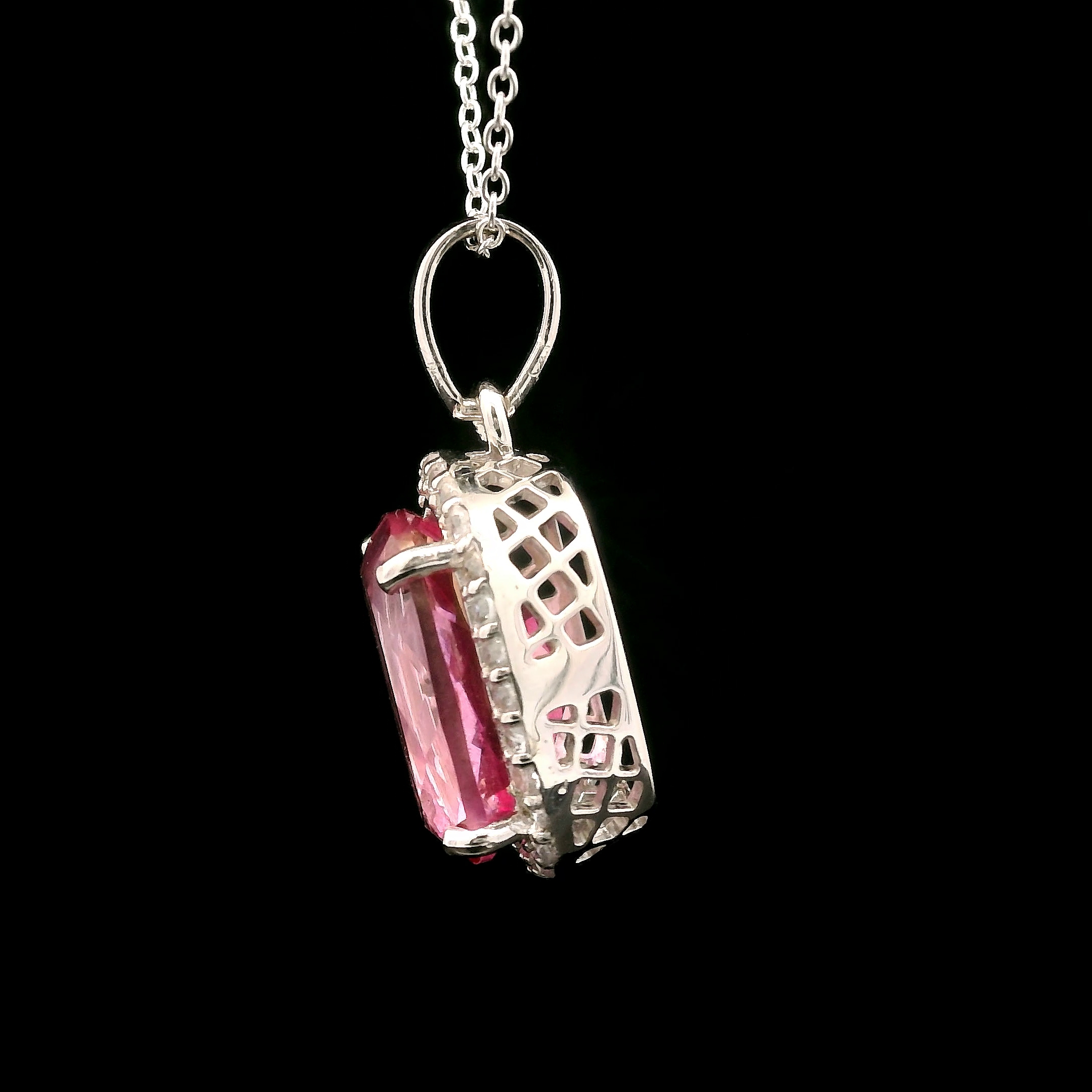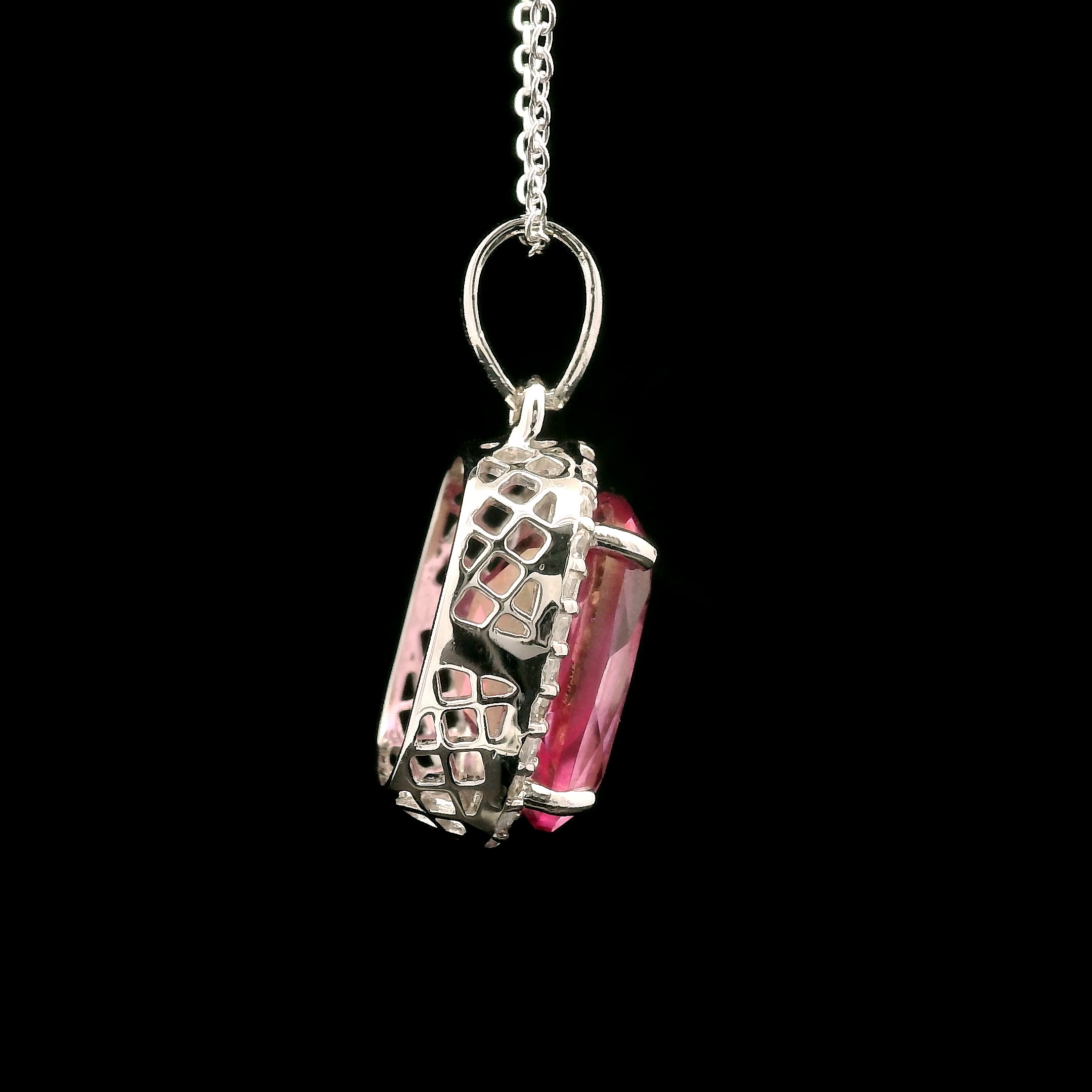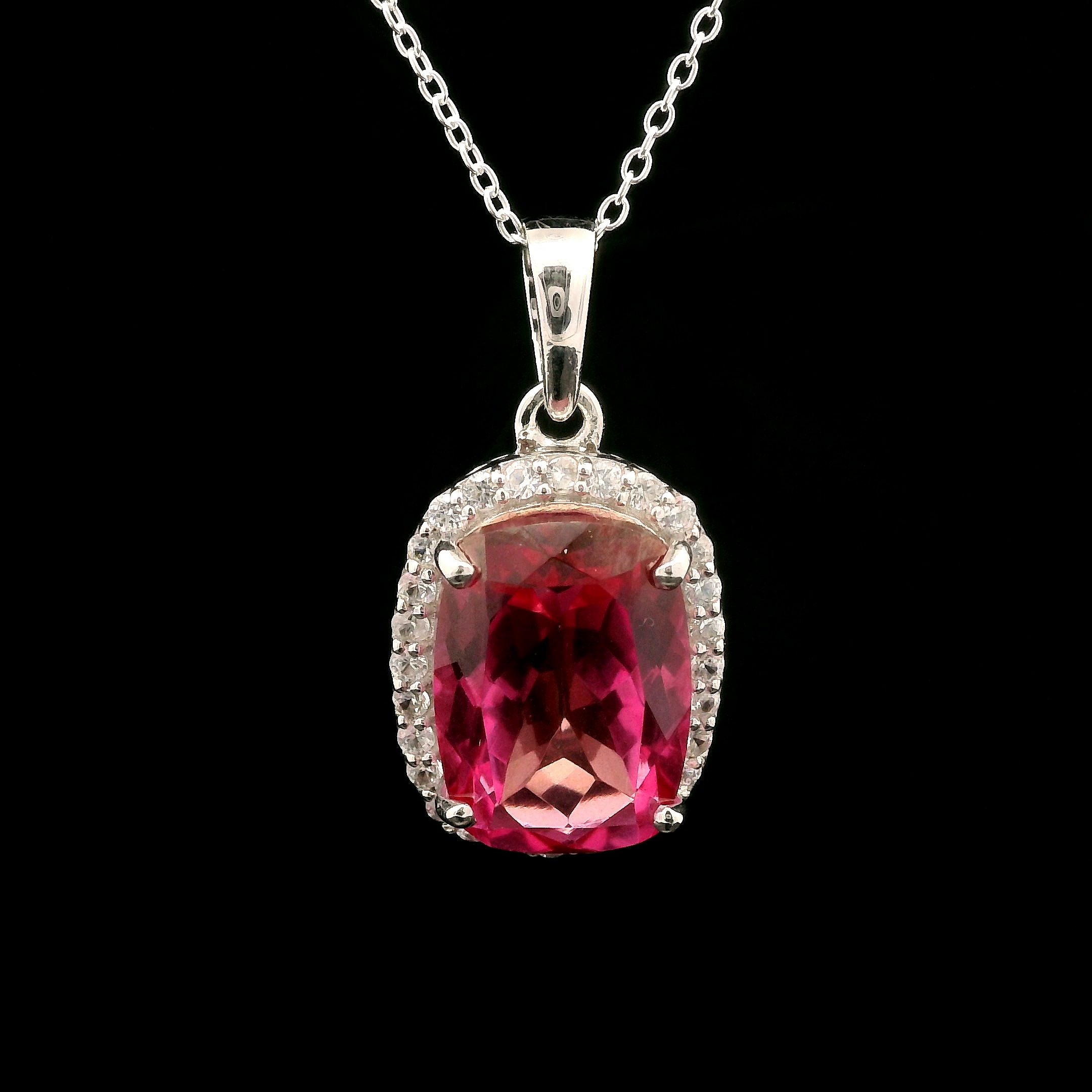 925 Sterling Silver 9.58 Ct Cushion Pink Topaz White Zircon Pendant