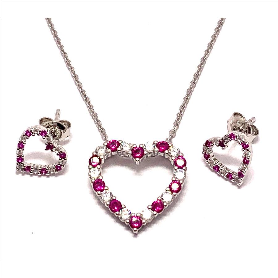 .925 Sterling Silver Chain 2.50ctw Ruby & Diamonique Diamond Traditional Design Necklace & Earrings Set