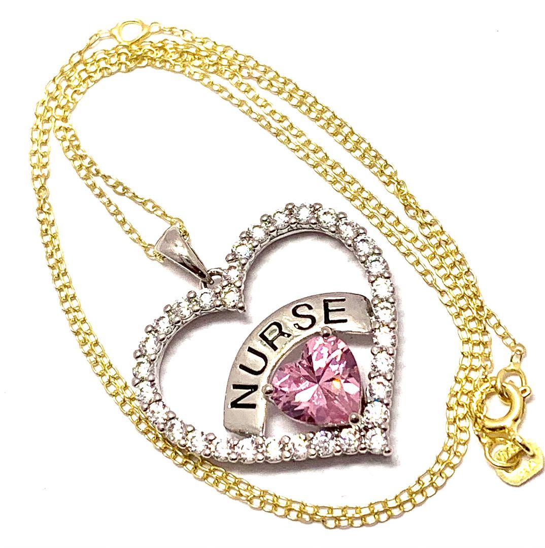 .925 Sterling Silver Chain 3.00ctw Pink Topaz & Diamonique Diamond NURSE Heart Necklace