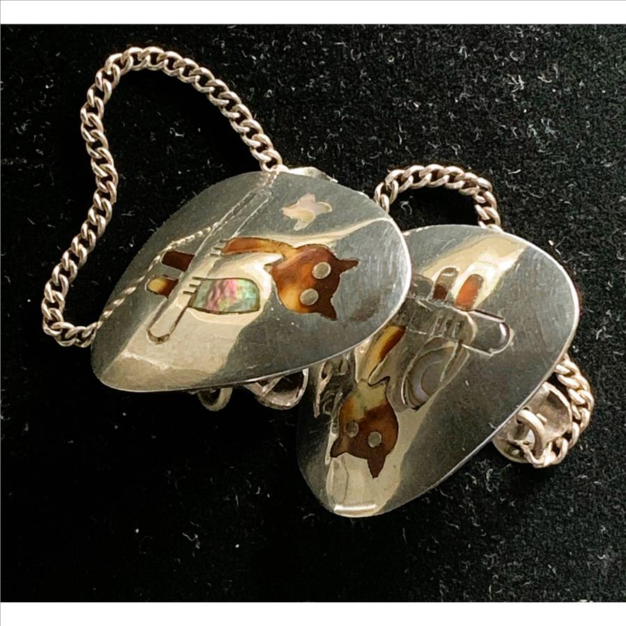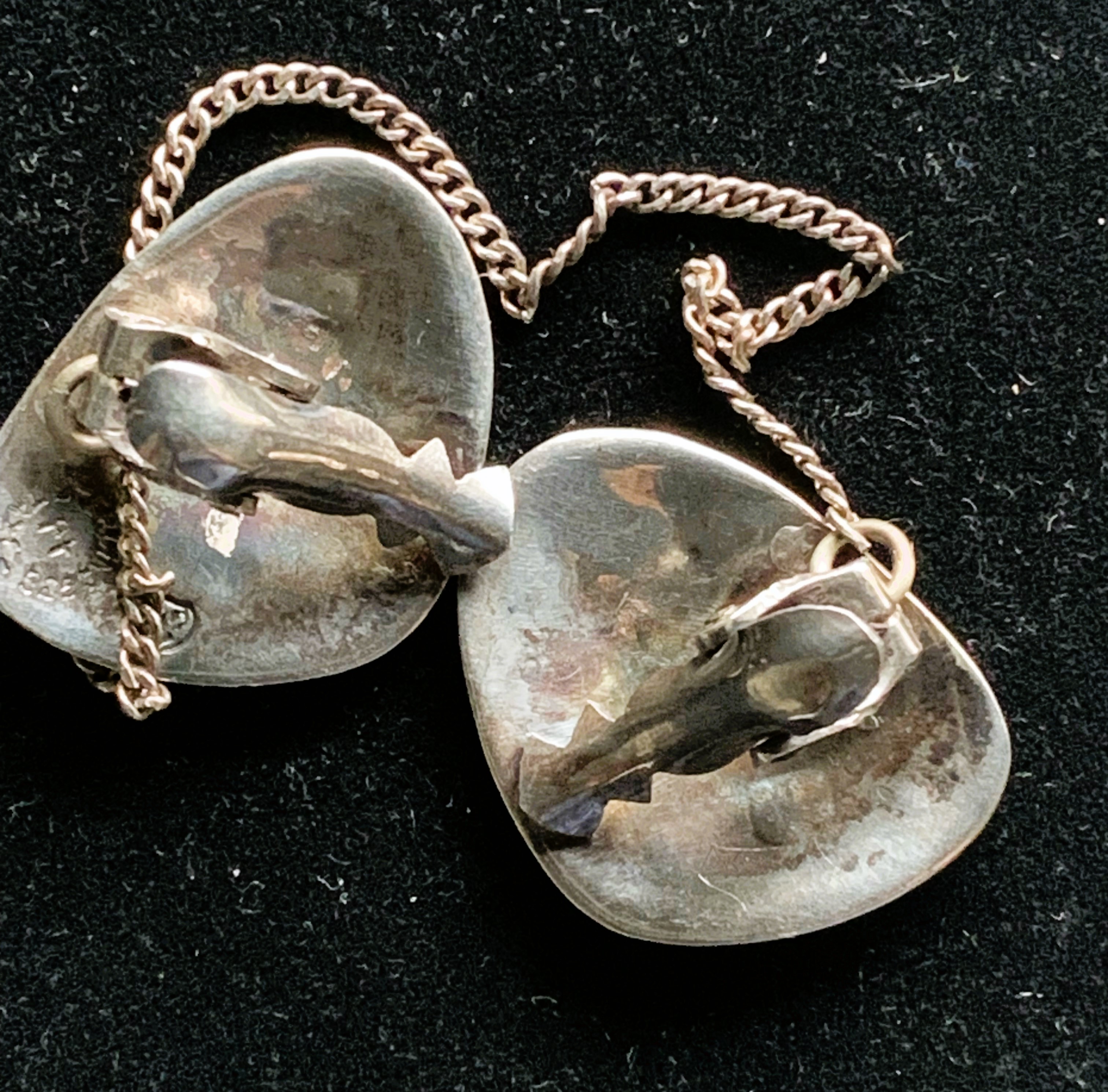 .925 STERLING SILVER DOUBLE PENDANT JEWELRY, VINTAGE NATIVE "CATS ON A PERCH", BRILLIANT SHINY DETAILS