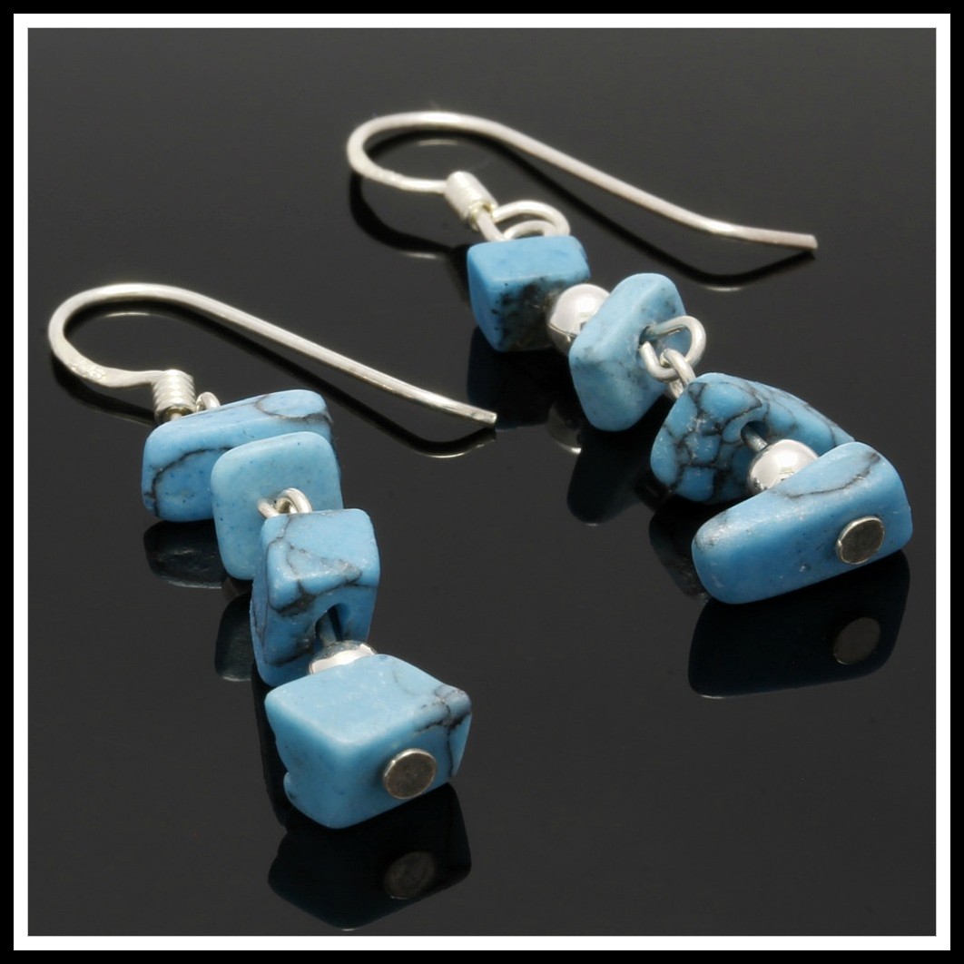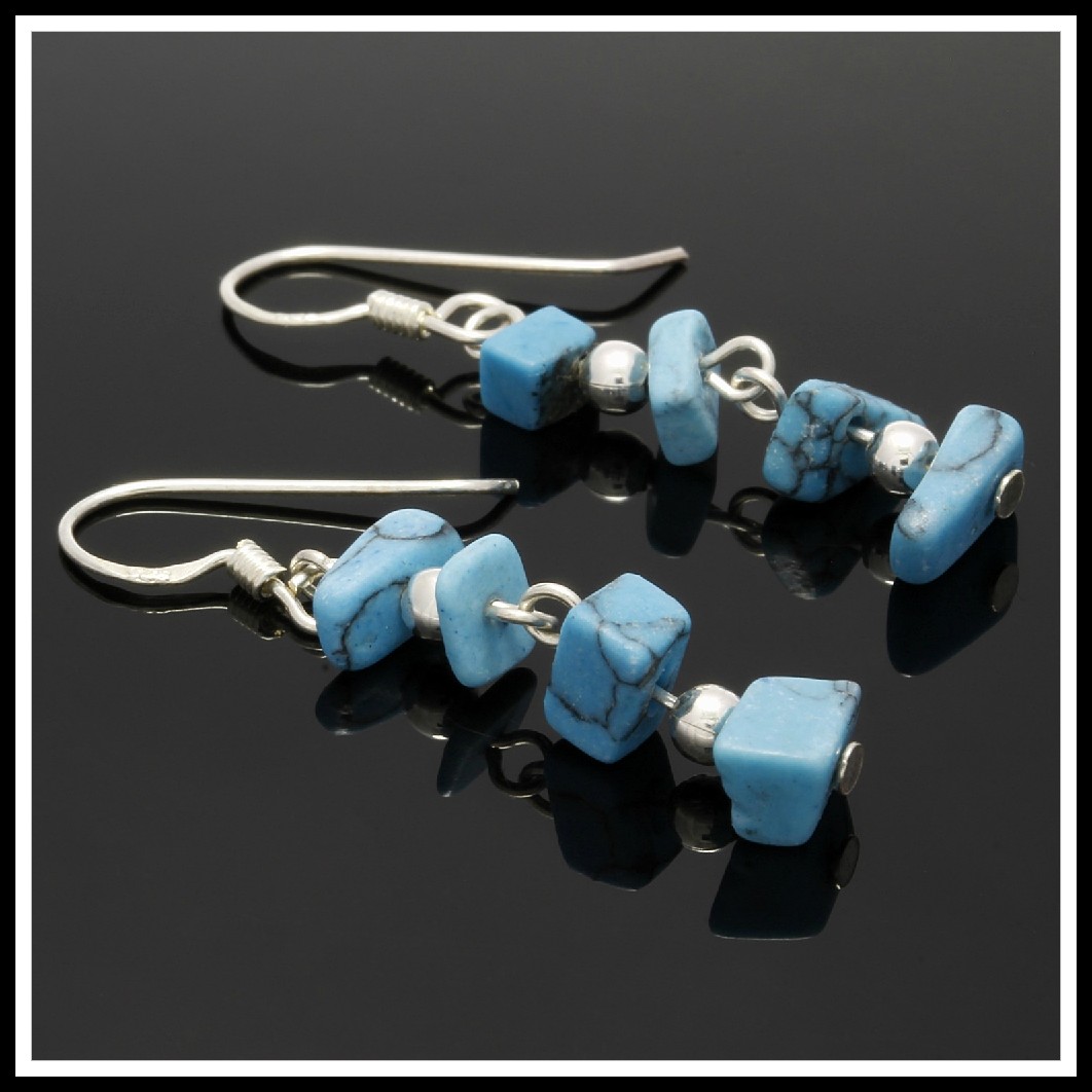 .925 Sterling Silver Genuine Turquoise Dangle Earrings