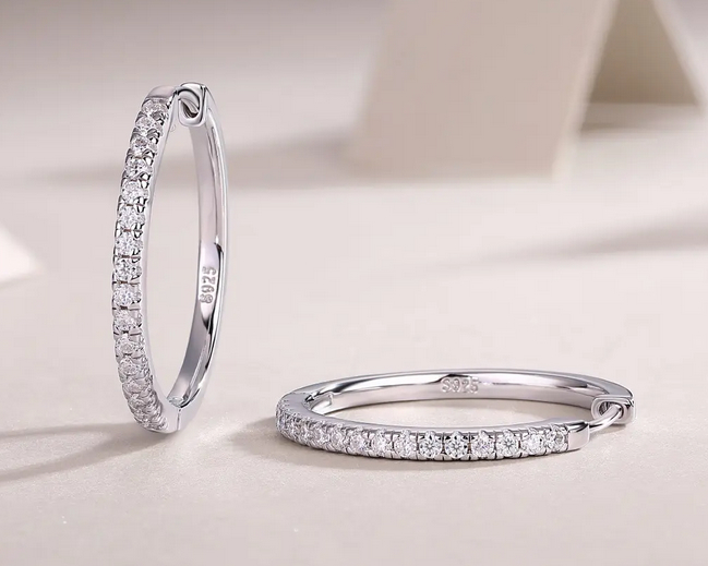 925 Sterling Silver Moissanite 0.015ct Hoop Earrings