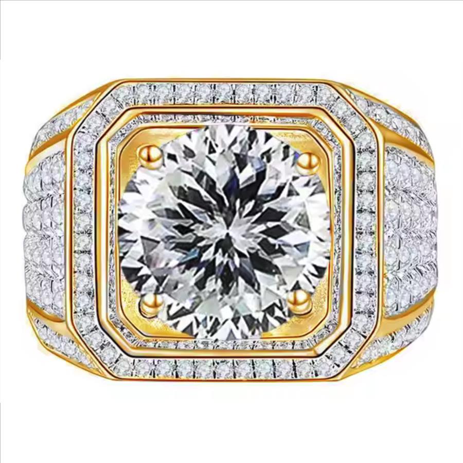 925 Sterling Silver Moissanite 1.0ct 14K Gold Plated Mens Ring