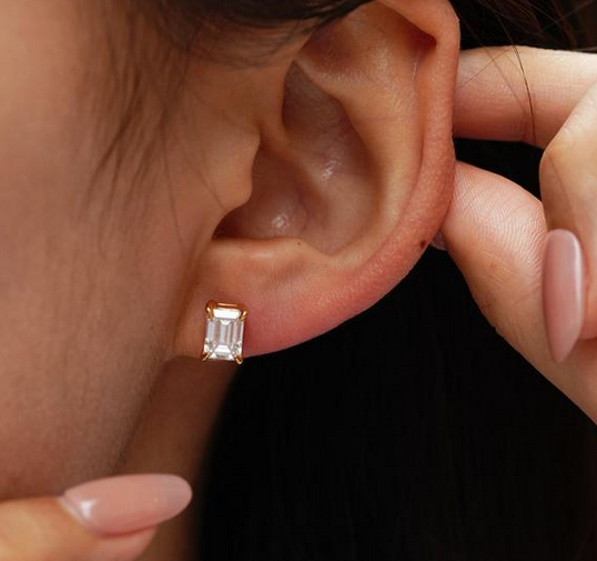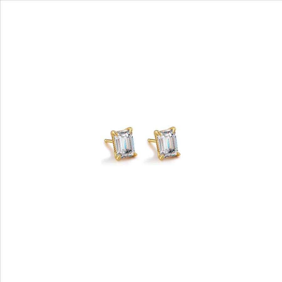 925 Sterling Silver Moissanite 1.0ct 18K Gold Plated Emerald Cut Stud Earrings