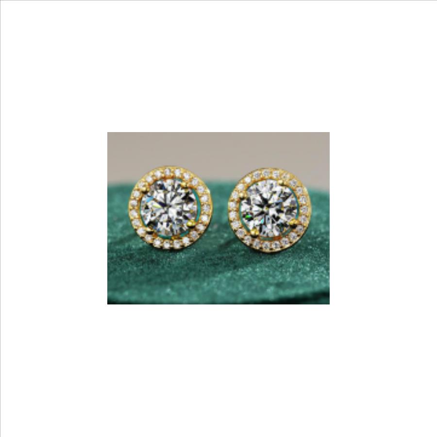 925 Sterling Silver Moissanite 1.0ct 18K Gold Plated Halo Stud Earrings