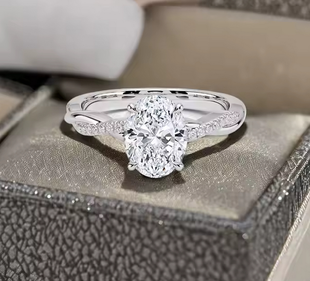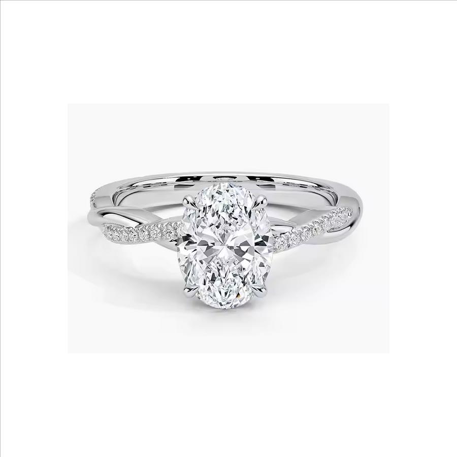 925 Sterling Silver Moissanite 1.5ct Oval Cut Twist Ring
