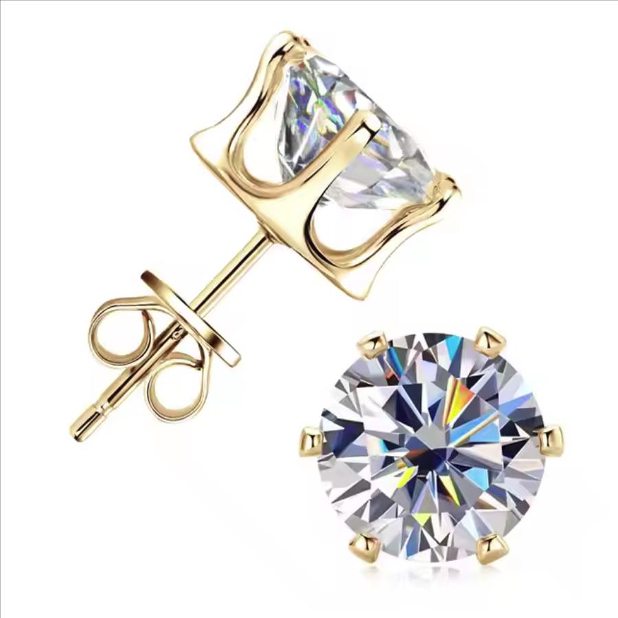 925 Sterling Silver Moissanite 2.0ct 14K Gold Plated Stud Earrings
