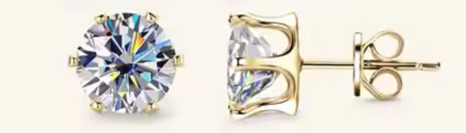 These Moissanites are Mounted in 925 Stamped Solid Sterling Silver with 14K Gold Overlay, which gives these Earrings their High Polish and Shine.