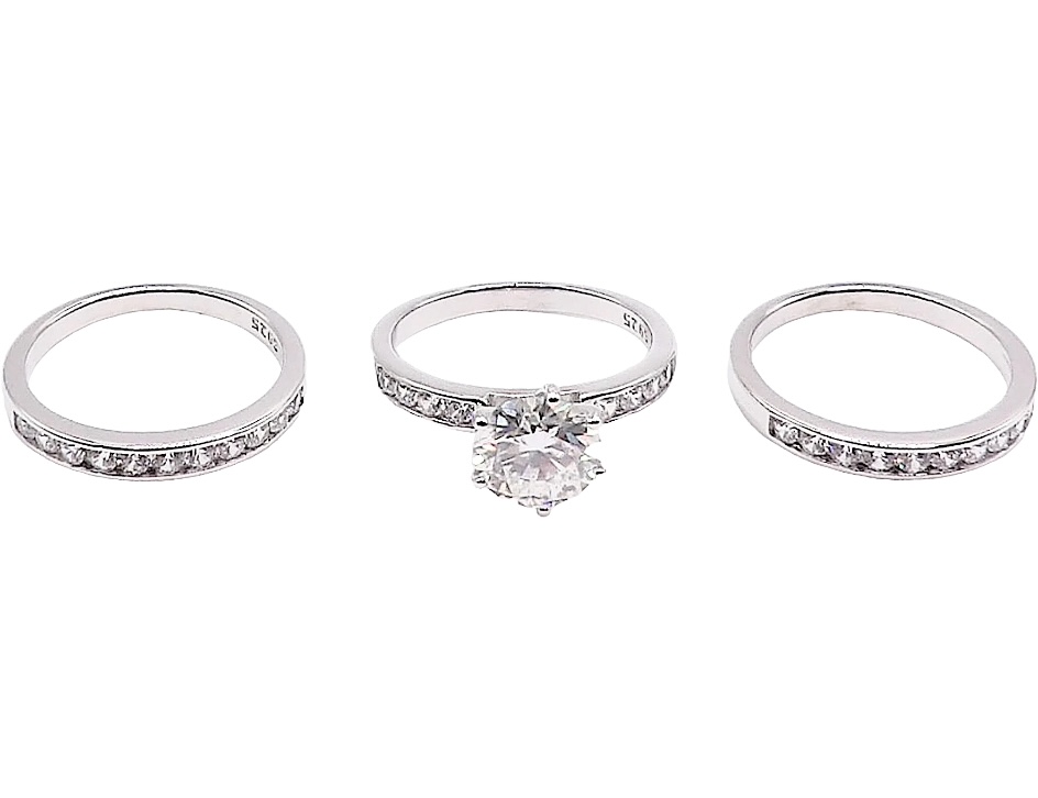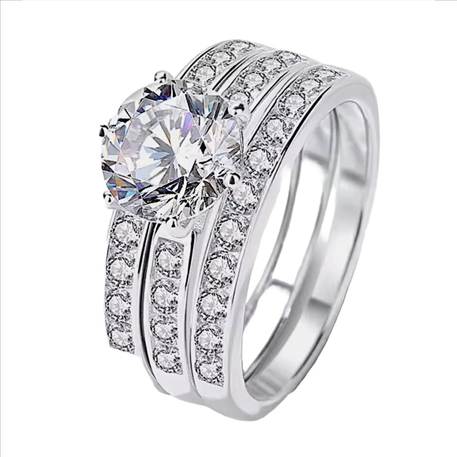 925 Sterling Silver Moissanite 2.0ct Engagement/Wedding Ring Set