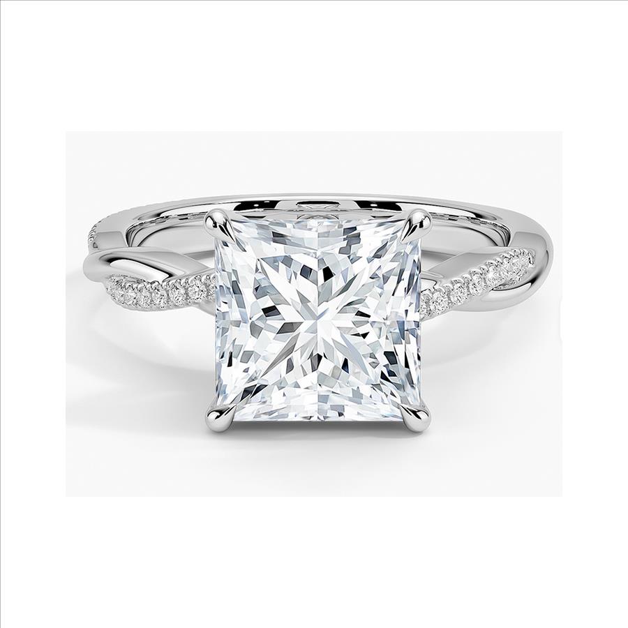 925 Sterling Silver Moissanite 2.0ct Princess Cut Twist Band Ring