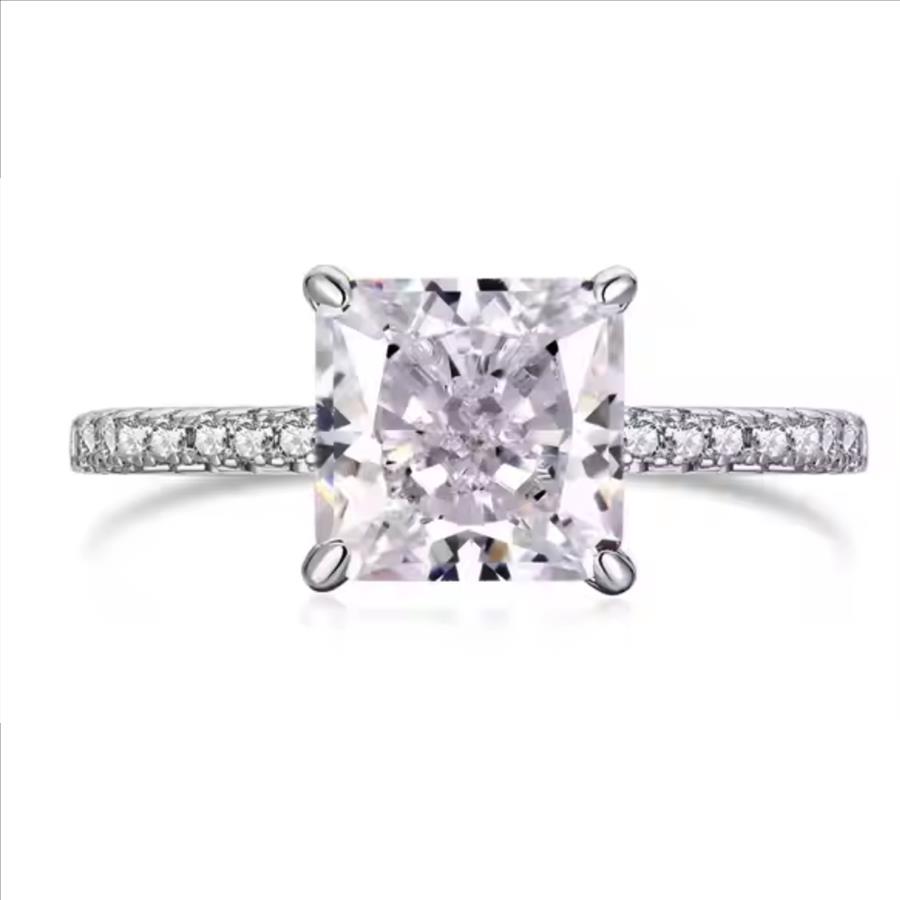925 Sterling Silver Moissanite 3.0ct Princess Cut Ring
