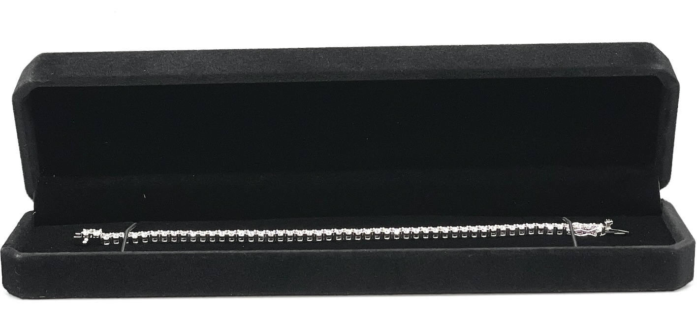 These Ultra Premium Moissanites are Mounted in 925 Stamped Solid Sterling Silver with White Gold Overlay, which gives this Tennis Bracelet its High Polish and Shine.